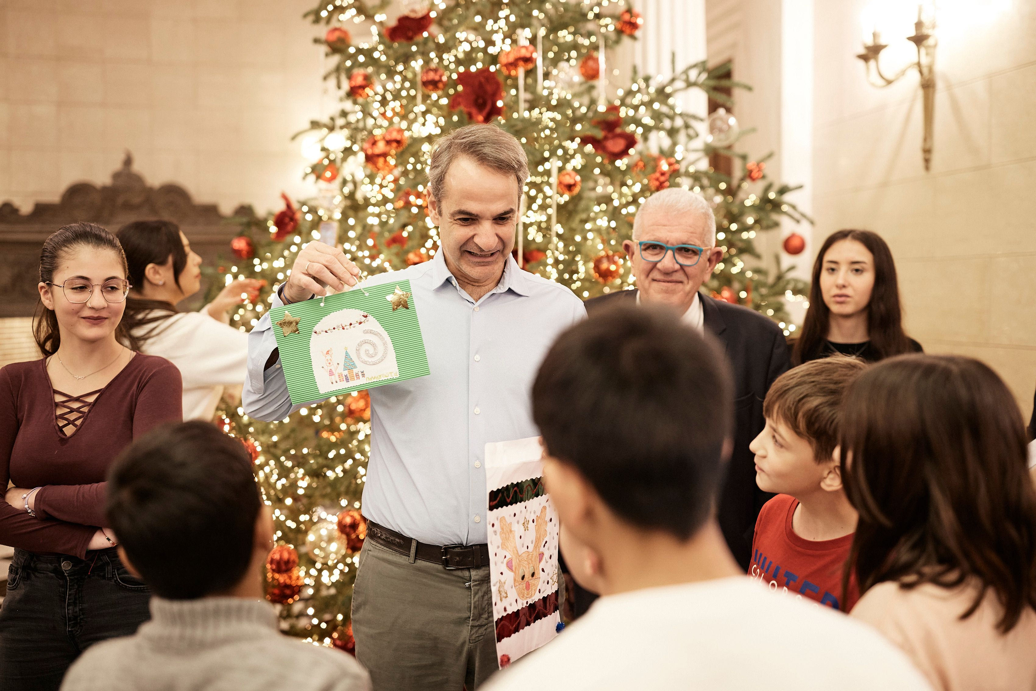 Τα παιδιά ετοίμασαν στολίδια με ευχές και αφιερώσεις, τα οποία κρέμασαν μαζί με τον Πρωθυπουργό στο χριστουγεννιάτικο δέντρο του Μεγάρου Μαξίμου, ενώ είχαν την ευκαιρία να γνωρίσουν τον Πίνατ, ο οποίος τους έκανε συντροφιά καθ’ όλη τη διάρκεια της επίσκεψής τους.