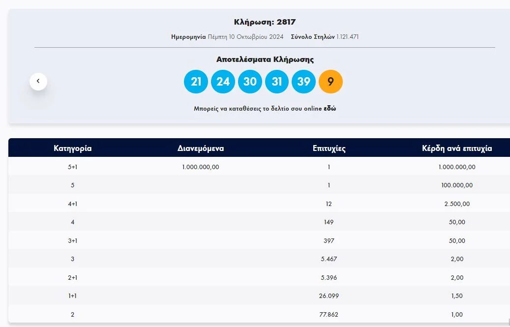 Έγινε η κλήρωση με αριθμό 2817 του ΤΖΟΚΕΡ το βράδυ της Πέμπτης (10/10).