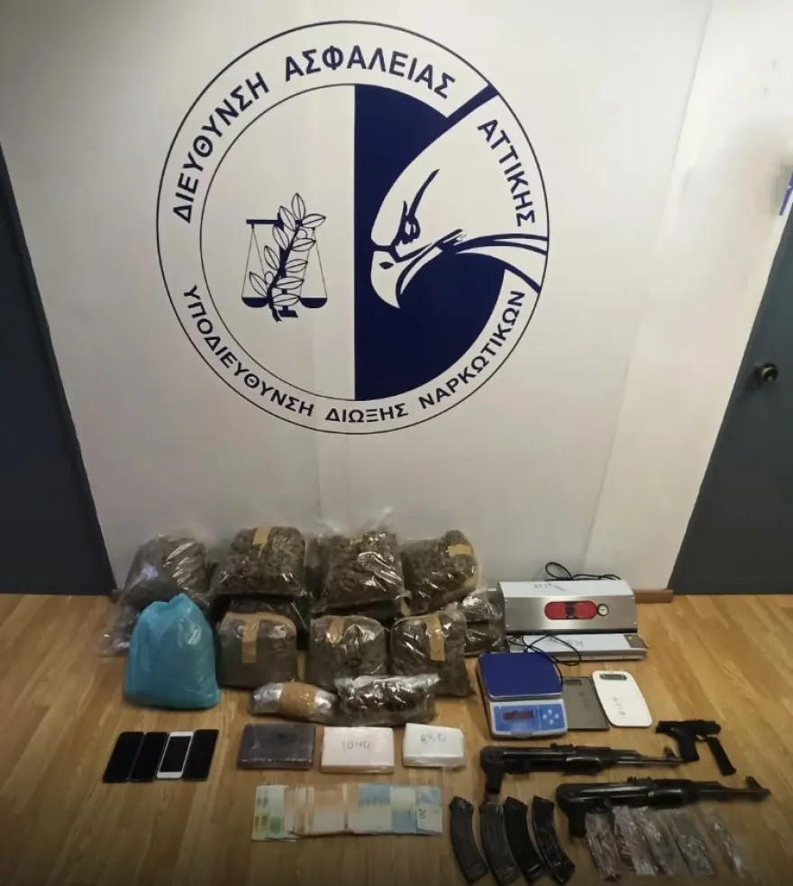 Έλεγχος της ΟΠΚΕ σε ύποπτο όχημα στον Κορυδαλλό οδήγησε σε κατάσχεση πάνω από δύο κιλά κοκαΐνης, 16 κιλά κάνναβης, δύο καλάσνικοφ και πιστόλι με γεμιστήρα και 13 φυσίγγια.