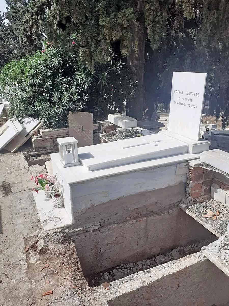 Με συνοπτικές διαδικασίες αποκαταστάθηκε η ζημιά στον τάφο του Κώστα Βουτσά στο Α’ Κοιμητήριο Αθηνών.