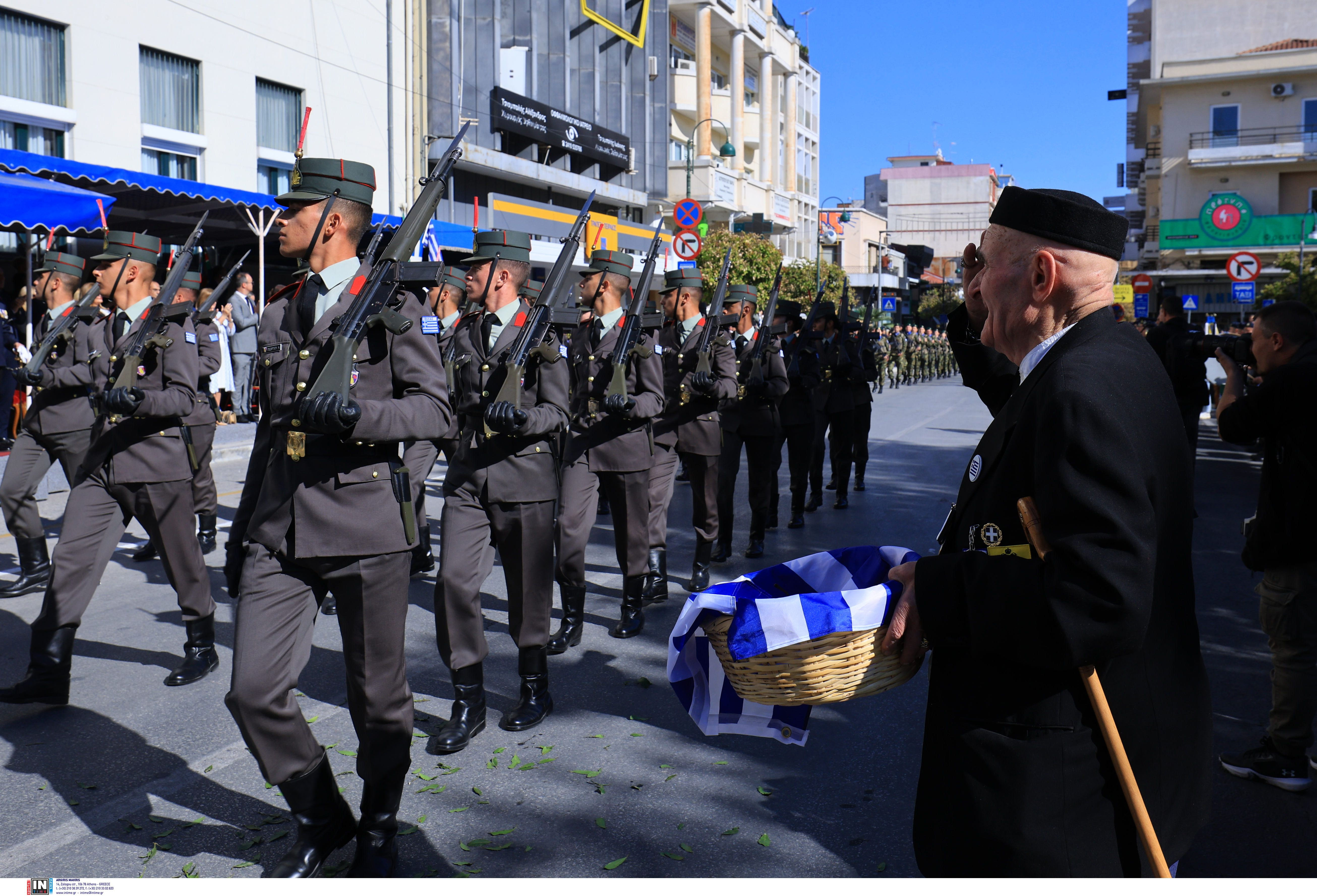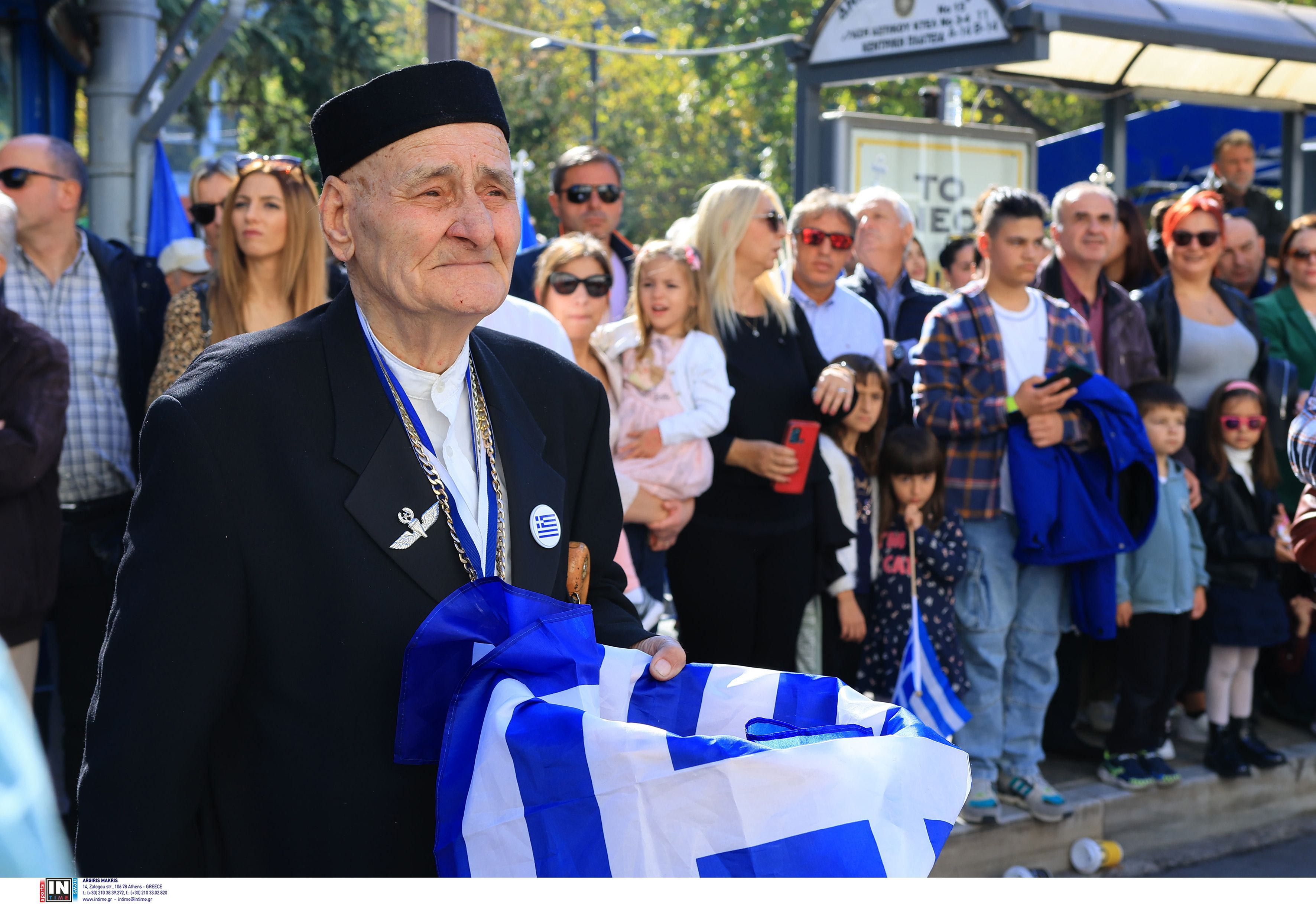 Καθώς οι ήχοι της παρέλασης αντηχούσαν γύρω του, εκείνος φαινόταν να ταξιδεύει πίσω στο χρόνο.