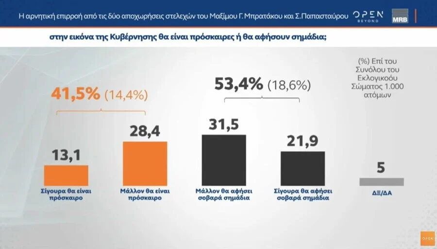 Πλήγμα στην κυβέρνηση καταγράφει η νέα δημοσκόπηση της MRB που διενεργήθηκε για λογαριασμό του OPEN.