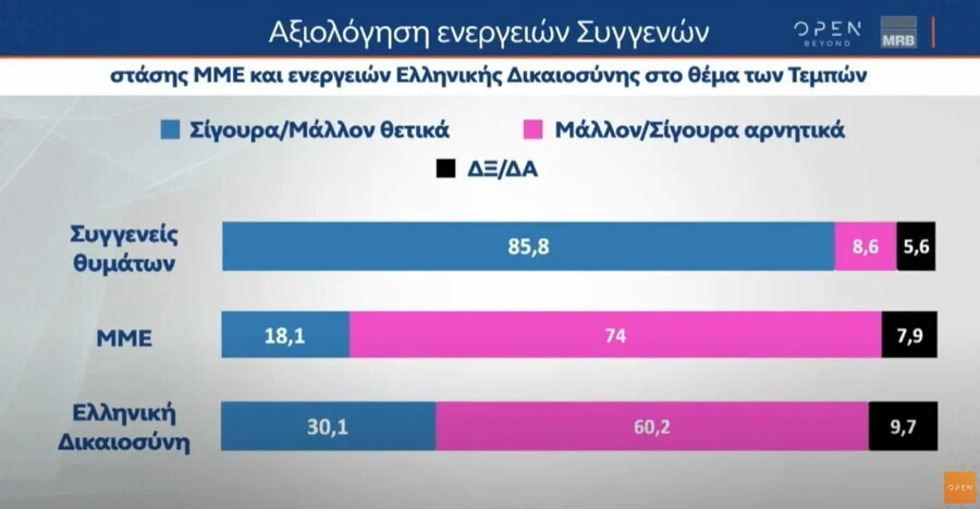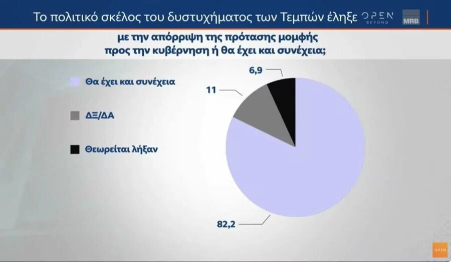 Παράλληλα, το 85,5% των ψηφοφόρων της ΝΔ λέει ότι το πολιτικό σκέλος των Τεμπών δεν έληξε.
