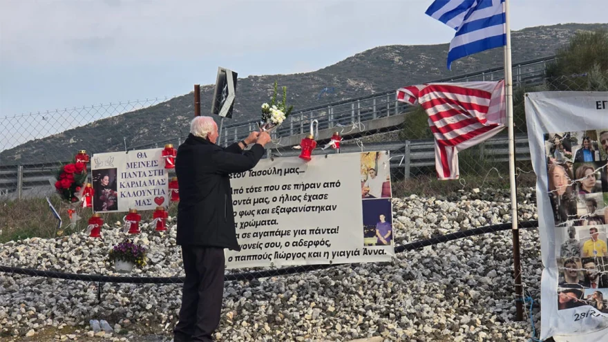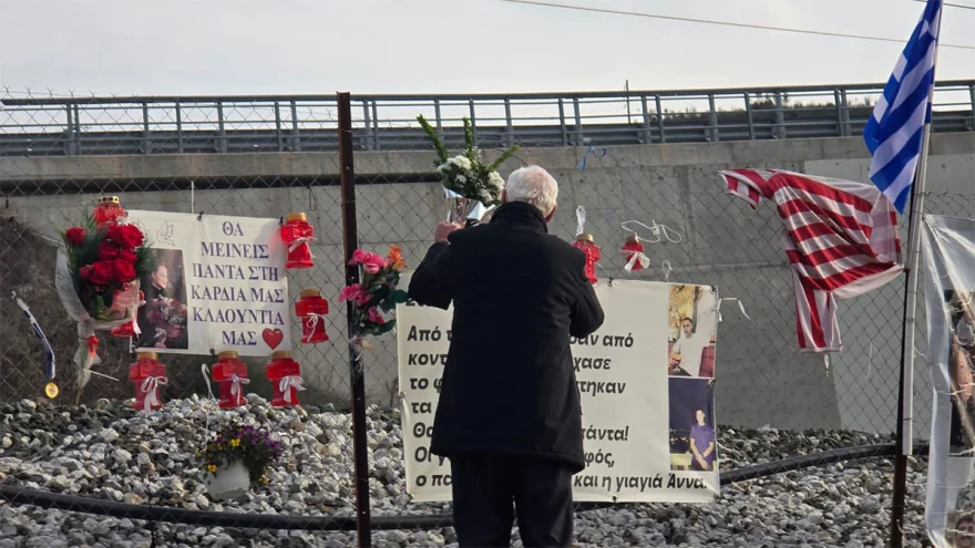 Στο σημείο της τραγωδίας στα Τέμπη βρέθηκαν την Κυριακή συγγενείς των θυμάτων για να αφήσουν λουλούδια στη μνήμη τους.
