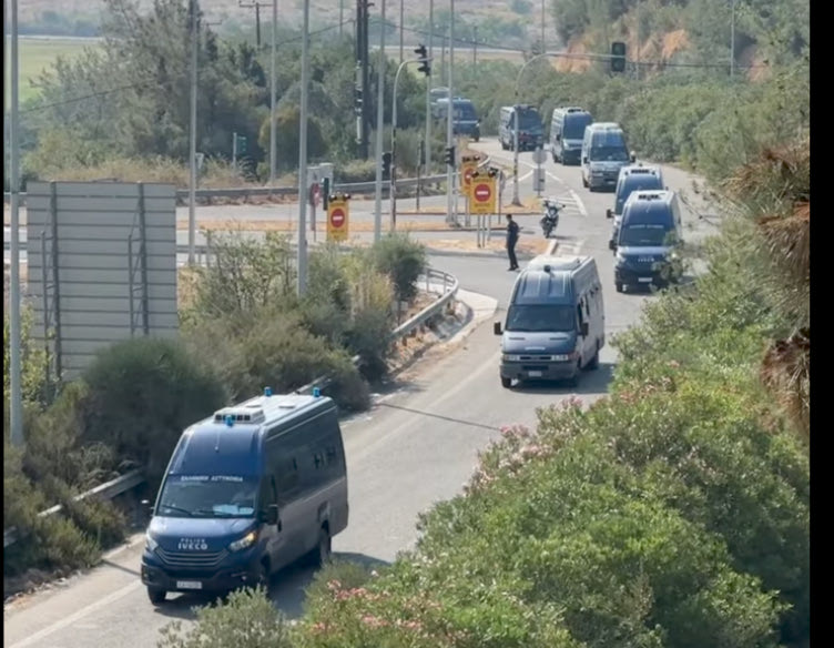 Σκηνές από την άφιξη του τεράστιου κομβόι της αστυνομίας στην δομή φιλοξενίας: