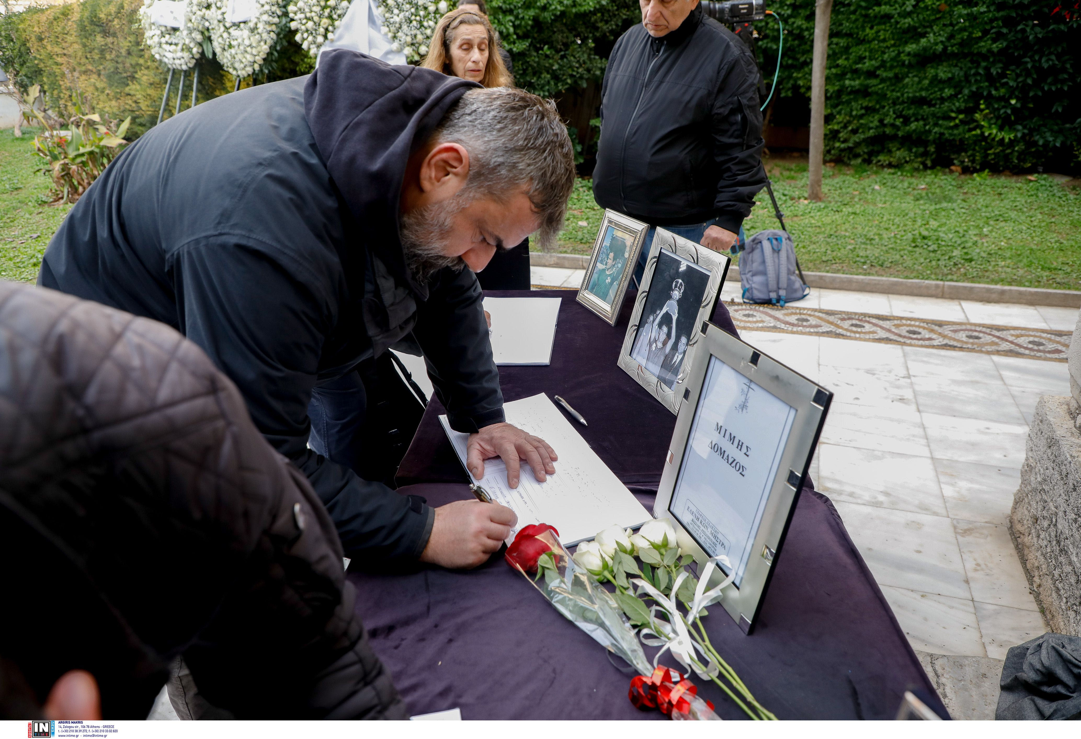 Δεκάδες πρώην και νυν ποδοσφαιριστές πήγαν στο παρεκκλήσι της Μητρόπολης προκειμένου να πουν το τελευταίο αντίο στον Μίμη Δομάζο. Μεταξύ άλλων ο Τάκης Οικονομόπουλος, ο Νίκος Καρούλιας, ο Στέλιος Μανωλάς, ο Κριστόφ Βαζέχα και άλλοι έδωσαν αποχαιρέτισαν τον καλό τους φίλο.