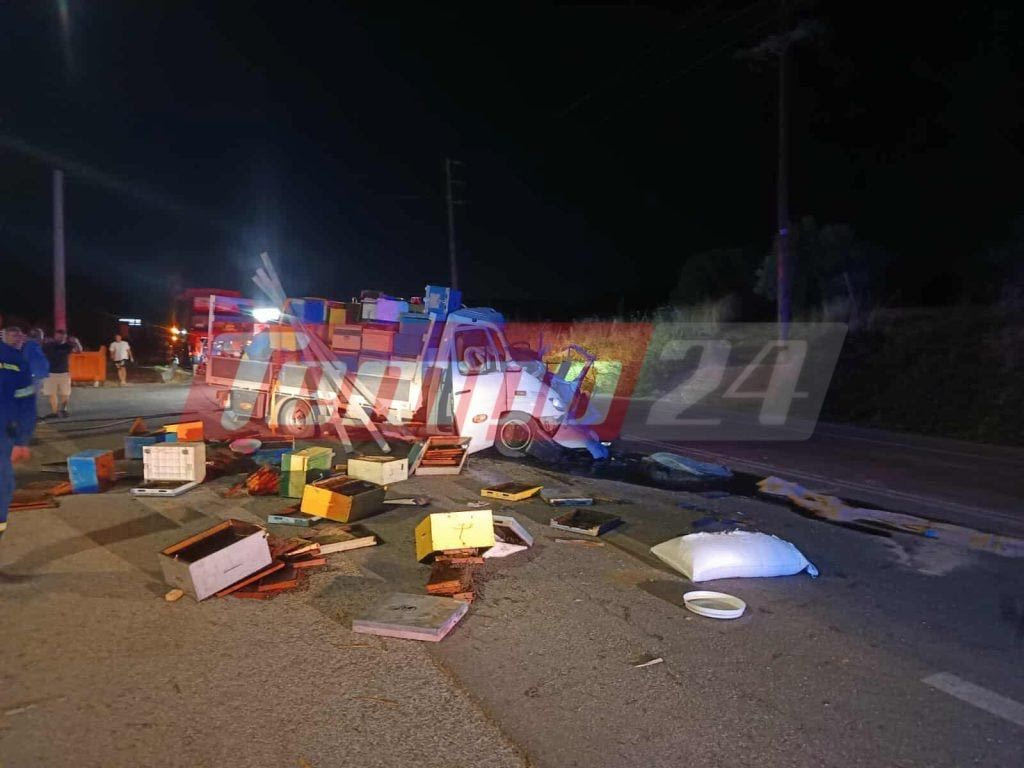 Νταλίκα συγκρούστηκε σφοδρά με φορτηγάκι που μετέφερε μελίσσια και οδηγούσε ένας 60χρονος κάτοικος Καρπέτα. Η σύγκρουση ήταν τόσο βίαιη που το φορτηγάκι μετατράπηκε σε άμορφη μάζα σιδερικών.