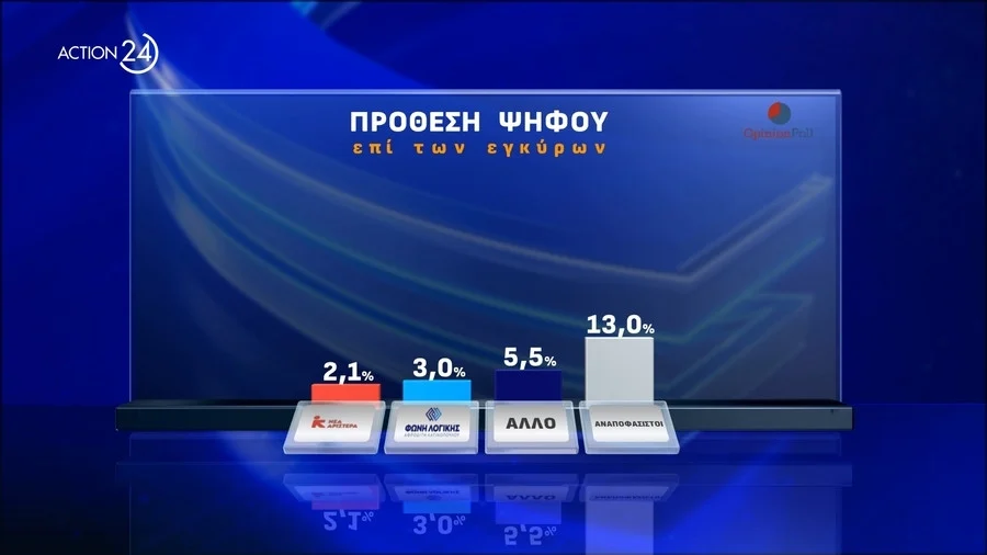 Δημοσκόπηση Opinnion Poll: Πρόθεση ψήφου επί των εγκύρων σε πιθανές εκλογές