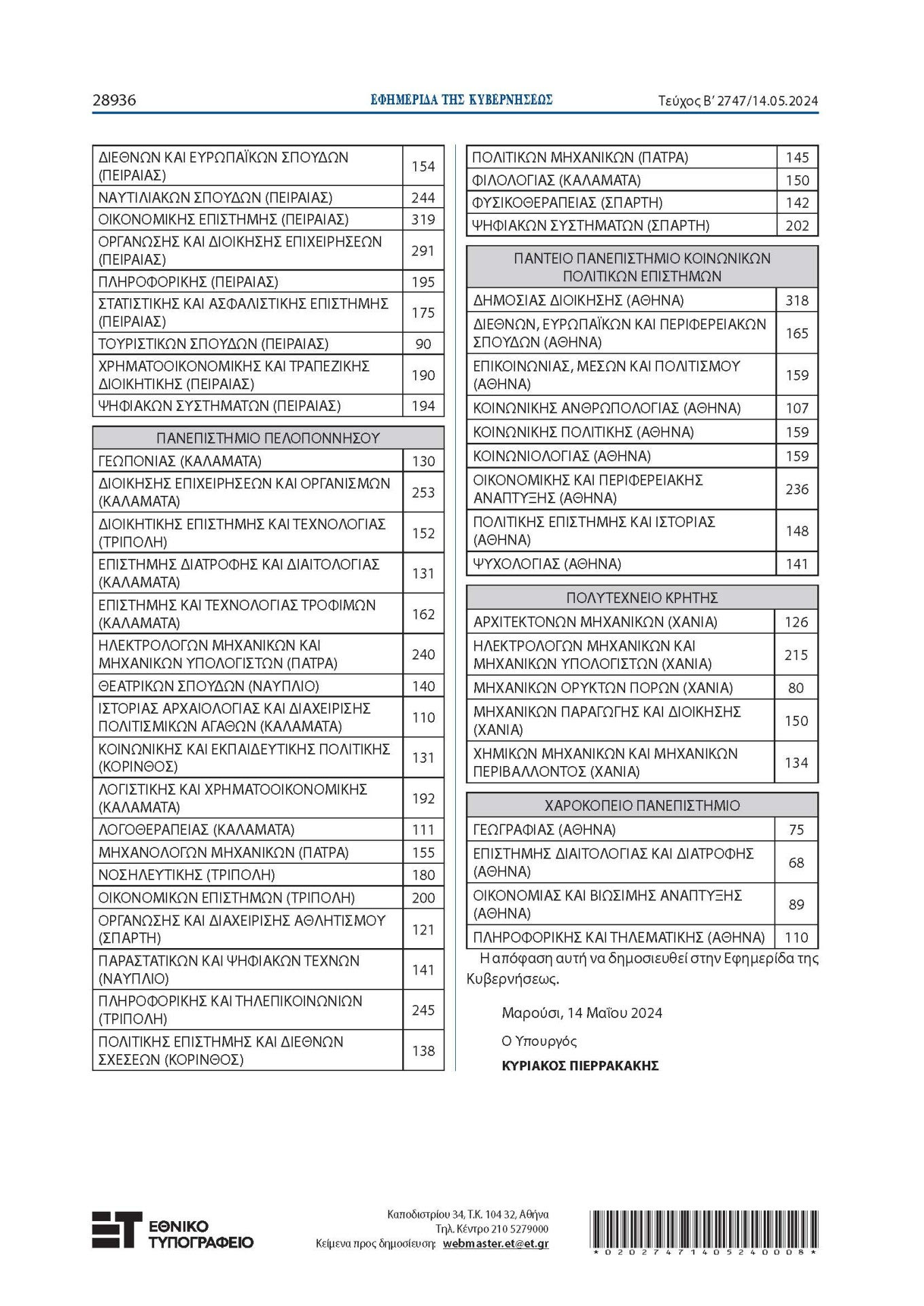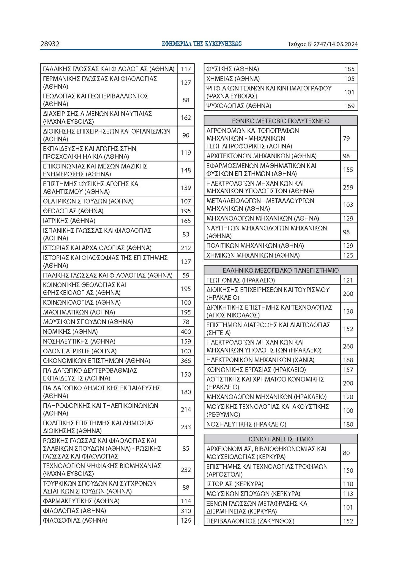 Πανελλαδικές 2024: 68.851 οι εισακτέοι στην τριτοβάθμια εκπαίδευση φέτος – Πίνακες με τις θέσεις ανά σχολή-10