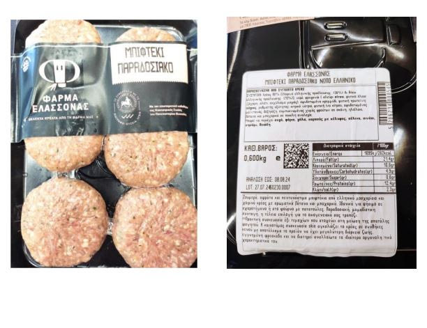 Ο Ε.Φ.Ε.Τ. και ειδικότερα η Περιφερειακή Διεύθυνση Κεντρικής Μακεδονίας, κατά τη διενέργεια ελέγχων στο πλαίσιο του Προγράμματος «Επίσημος Έλεγχος Μικροβιολογικών Κριτηρίων Ασφάλειας Τροφίμων» έτους 2024, προέβη σε δειγματοληψία νωπού παρασκευάσματος κρέατος (χοιρινό-βοδινό) με τα στοιχεία: «ΜΠΙΦΤΕΚΙ ΠΑΡΑΔΟΣΙΑΚΟ ΝΩΠΟ» βάρους 0,600 κιλών, με ημερομηνία παρασκευής: 27/07/2024 LOT 27.07.2024 60230007 και ημερομηνία ανάλωσης έως: 08/08/2024. Παρασκευαστής/Συσκευαστής: «ΚΑΣΙΔΗΣ Α.Ε» με διακριτικό τίτλο «ΦΑΡΜΑ ΕΛΑΣΣΟΝΑΣ».