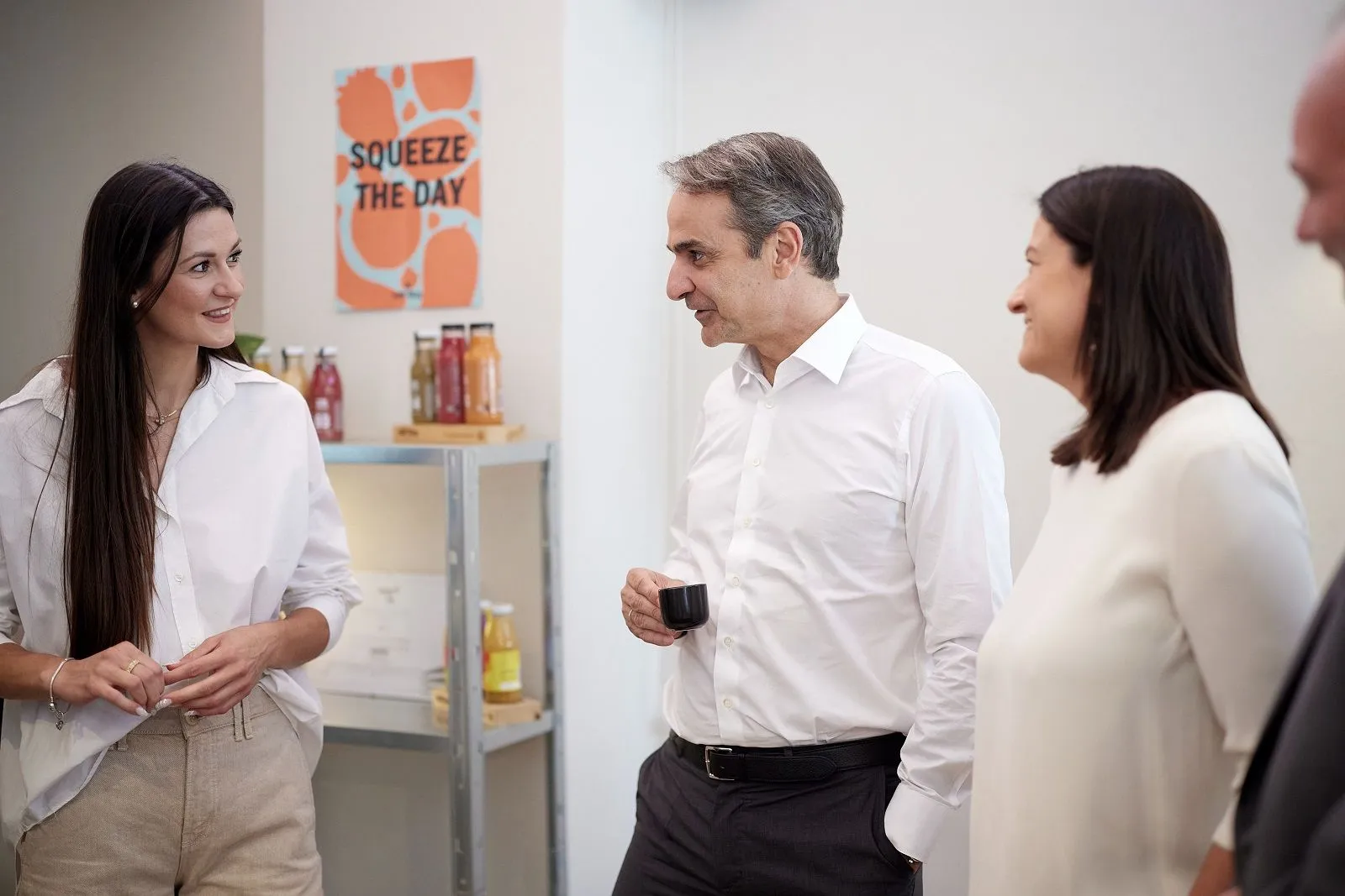 Ο Κυριάκος Μητσοτάκης επισκέφθηκε ένα καφέ στο Περιστέρι, το οποίο άνοιξε μια πρώην άνεργη γυναίκα μαζί με τον αδελφό της, αξιοποιώντας πρόγραμμα της Δημόσιας Υπηρεσίας Απασχόλησης (ΔΥΠΑ).