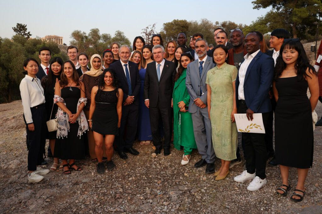 Ο Πρόεδρος της Διεθνούς Ολυμπιακής Επιτροπής Τόμας Μπαχ, ξεκίνησε την ομιλία του με ευχαριστίες. «Είναι πάντα μια τόσο συγκινητική στιγμή να βρισκόμαστε εδώ. Με το εμπνευσμένο φόντο της Ακρόπολης, δεν υπάρχει ωραιότερο σημείο από τον λόφο της Πνύκας για να αναλογιστούμε τα δύο μεγάλα δώρα που προσέφερε ο ελληνικός πολιτισμός στον κόσμο: τη δημοκρατία και τους Ολυμπιακούς Αγώνες, που και τα δύο γεννήθηκαν εδώ στην Ελλάδα και διαμορφώνουν τον κόσμο μας μέχρι σήμερα.