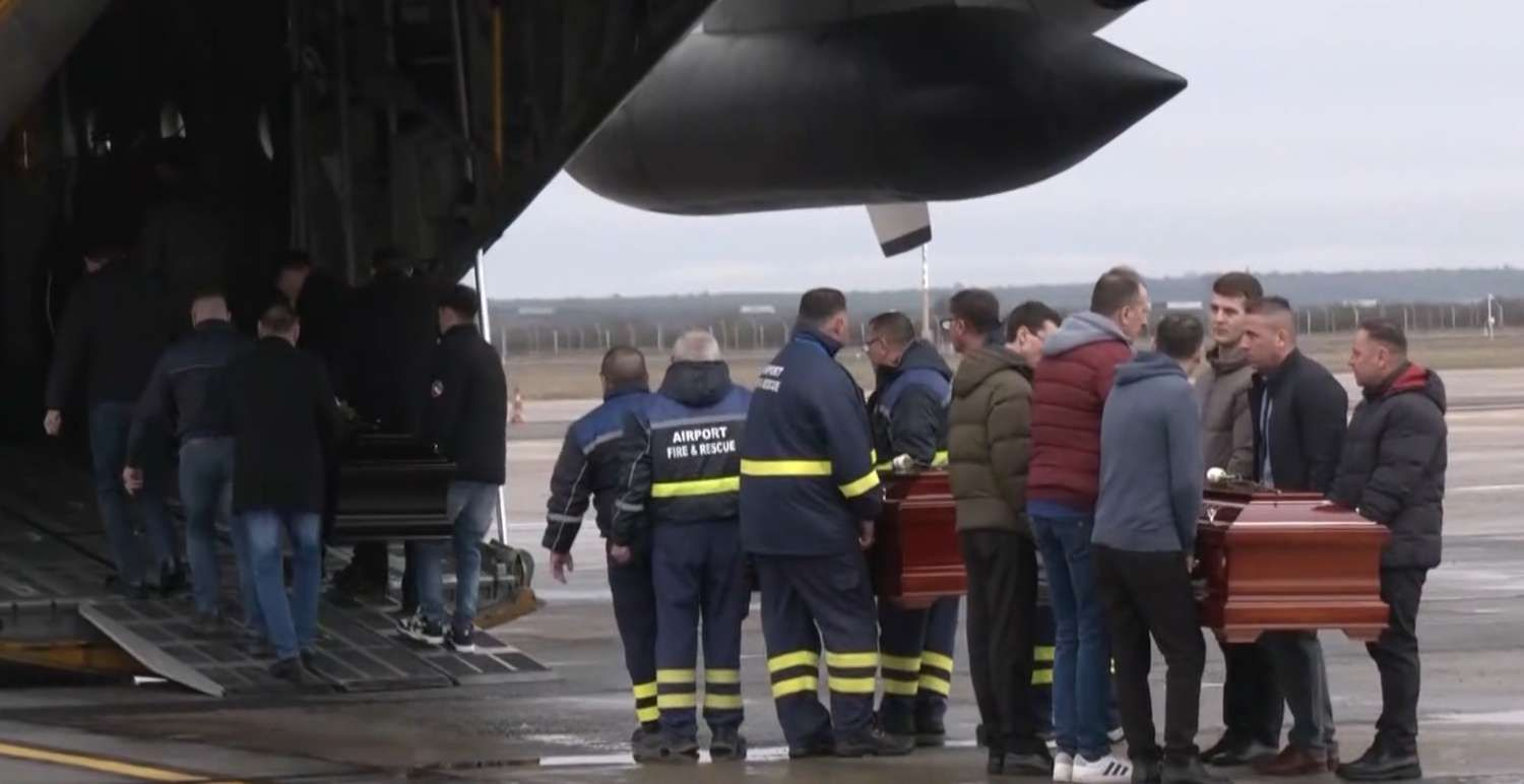 Στο αεροδρόμιο της Τιμισοάρα της Ρουμανίας οι 7 σοροί των οπαδών του ΠΑΟΚ, οι οποίοι έχασαν τη ζωή τους στο σοκαριστικό τροχαίο δυστύχημα.