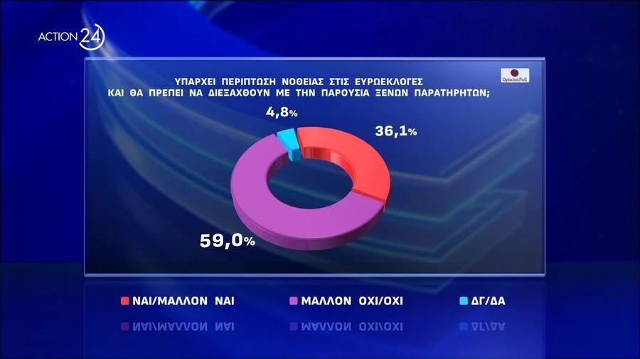 Το 59% δεν υιοθετεί την άποψη του Σ. Κασσελάκη ότι υπάρχει περίπτωση νοθείας στις Ευρωεκλογές και ότι θα πρέπει να διεξαχθούν με την παρουσία ξένων επιτηρητών. Την υιοθετεί το 36.1% ( 60% εντός του ΣΥΡΙΖΑ) . Στα κομματικά ακροατήρια πλειοψηφικά τάσσονται υπέρ αυτής στον ΣΥΡΙΖΑ, ΕΛΛΗΝΙΚΗ ΛΥΣΗ, ΝΙΚΗ και ΣΠΑΡΤΙΑΤΕΣ.