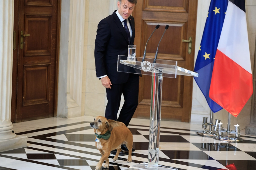 Σε πιο χαλαρό κλίμα, μακριά από τη βαρύτητα των υπογραφών που ακολούθησαν για τη στρατηγική συμφωνία Ελλάδας-Γαλλίας, ο Γάλλος πρόεδρος Εμανουέλ Μακρόν είχε μια σύντομη αλλά χαρακτηριστική στιγμή στο Μέγαρο Μαξίμου, παίζοντας με τον Πίνατ, τον σκύλο του πρωθυπουργού Κυριάκου Μητσοτάκη.