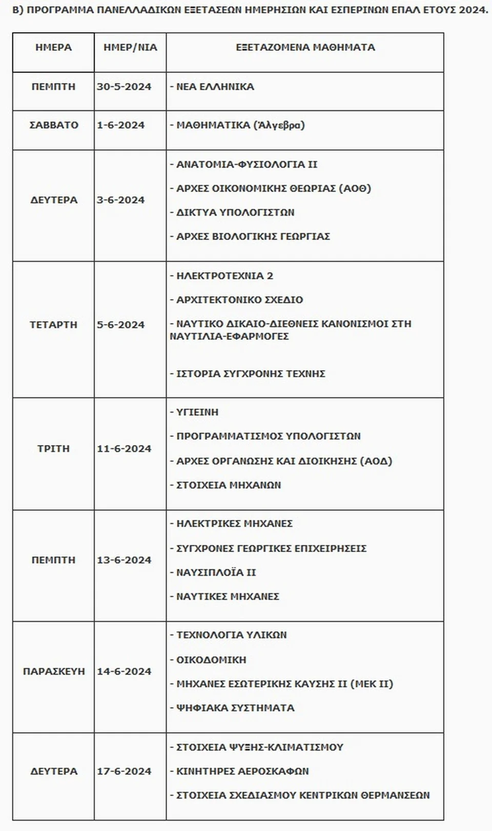 Πανελλήνιες 2024: Το πρόγραμμα εξετάσεων των ΕΠΑΛ