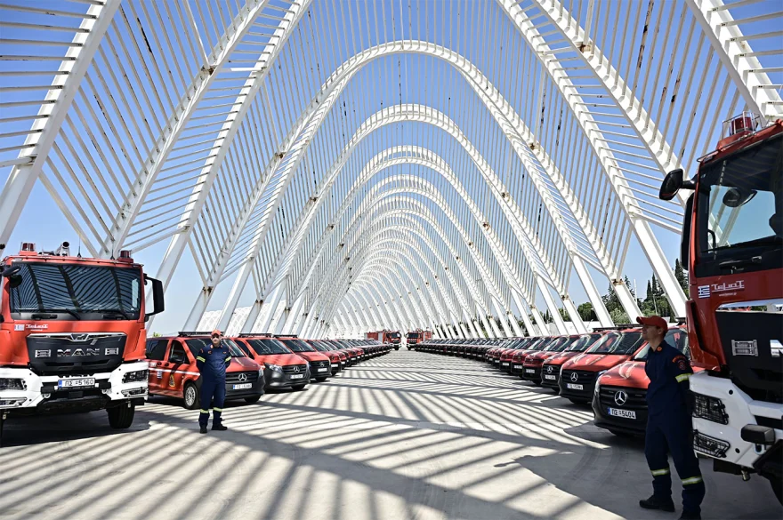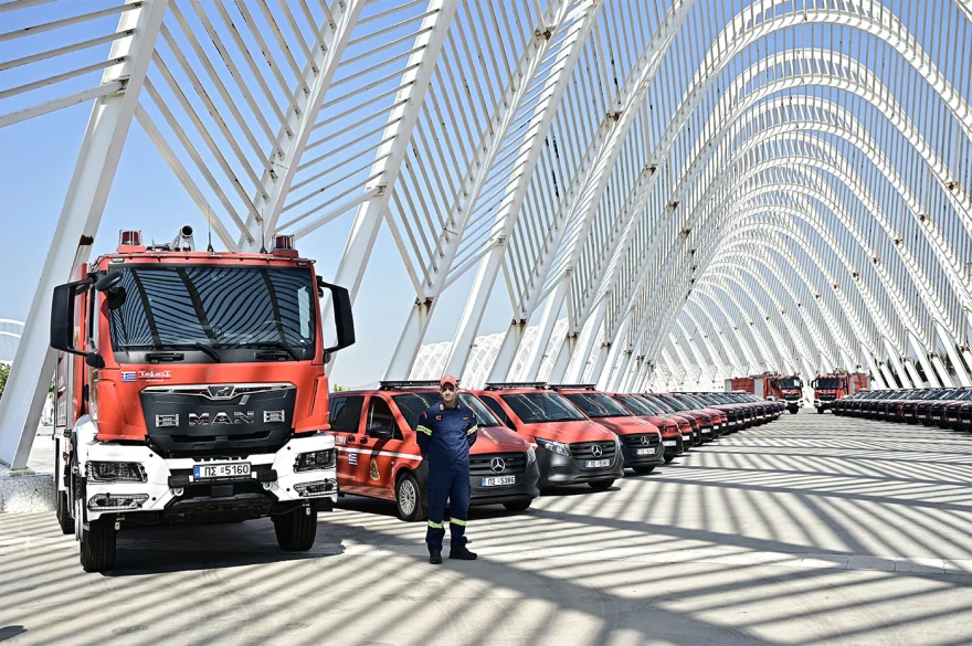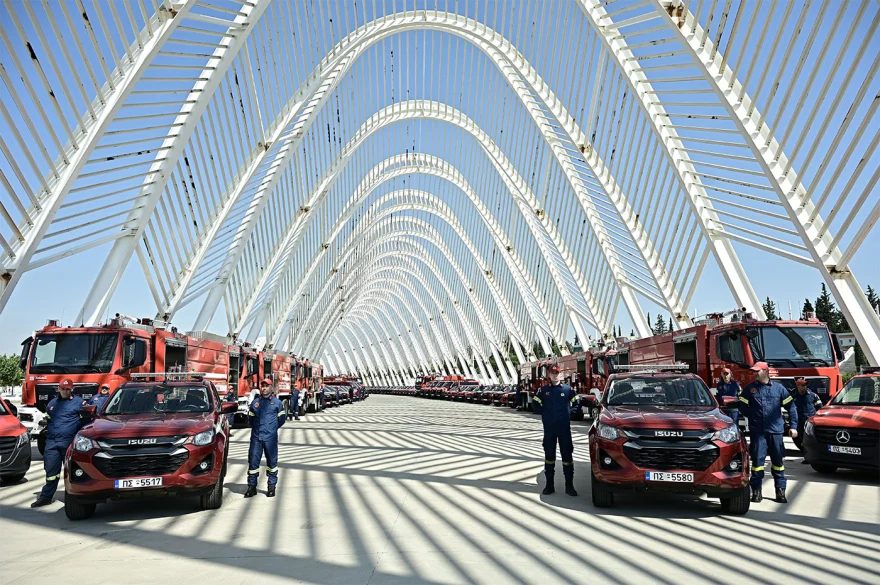 Στο ΟΑΚΑ παρουσία του πρωθυπουργού Κυριάκου Μητσοτάκη πραγματοποιήθηκε το πρωί της Παρασκευής η τελετή παράδοσης 164 νέων οχημάτων στην Πυροσβεστική.
