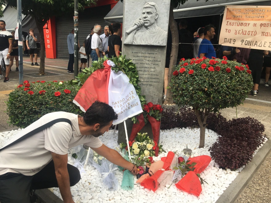 Συγγενείς, φίλοι, καλλιτέχνες, απλοί πολίτες που δεν γνώριζαν τον νεαρό τραγουδιστή έχουν συγκεντρωθεί στο μνημείο του Παύλου Φύσσα, όπου είναι το σημείο εκκίνησης της πορείας, που καταλήγει στη Μάντρα του Μπλόκου της Κοκκινιάς.