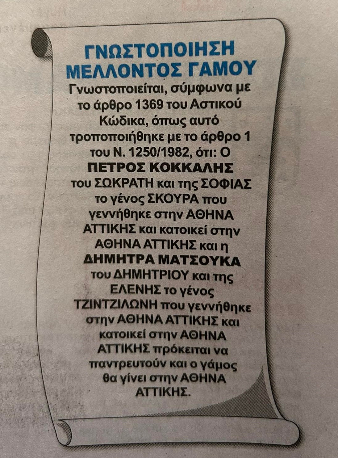 Είναι επίσημο πλέον. Με αναγγελία στην εφημερίδα «Φως των Σπορ», ο Πέτρος Κόκκαλης και η Δήμητρα Ματσούκα γνωστοποιούν τον επικείμενο γάμο τους.