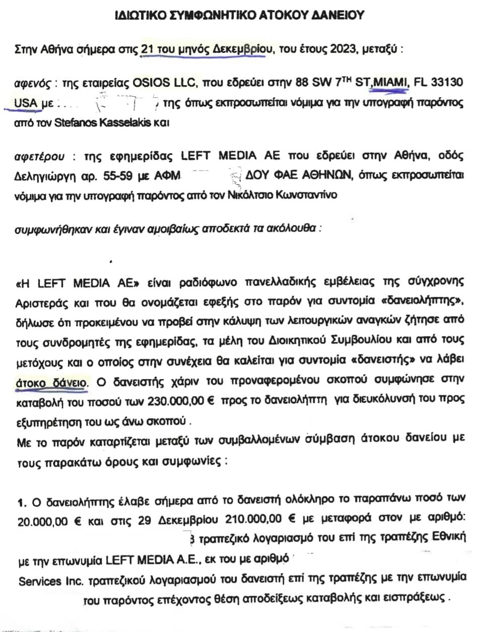 •Το δάνειο του Στέφανου Κασσελάκη μπήκε στον λογαριασμό της Left Media ΑΕ το απόγευμα της Παρασκευής 29/12/2023, ενώ το Δώρο Χριστουγέννων των εργαζομένων στα ΜΜΕ είχε καταβληθεί ήδη την Πέμπτη 21/12/2023 και η μισθοδοσία των εργαζομένων για Δεκέμβριο την Παρασκευή το πρωί 29/12/2023.