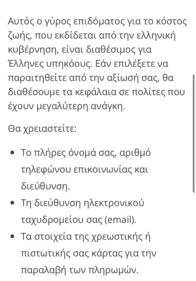 Ιδιαίτερη προσοχή συνίσταται στους πολίτες για μήνυμα που υποτίθεται ότι αποστέλλεται από το gov.gr για ένα επίδομα που δήθεν δικαιούνται.