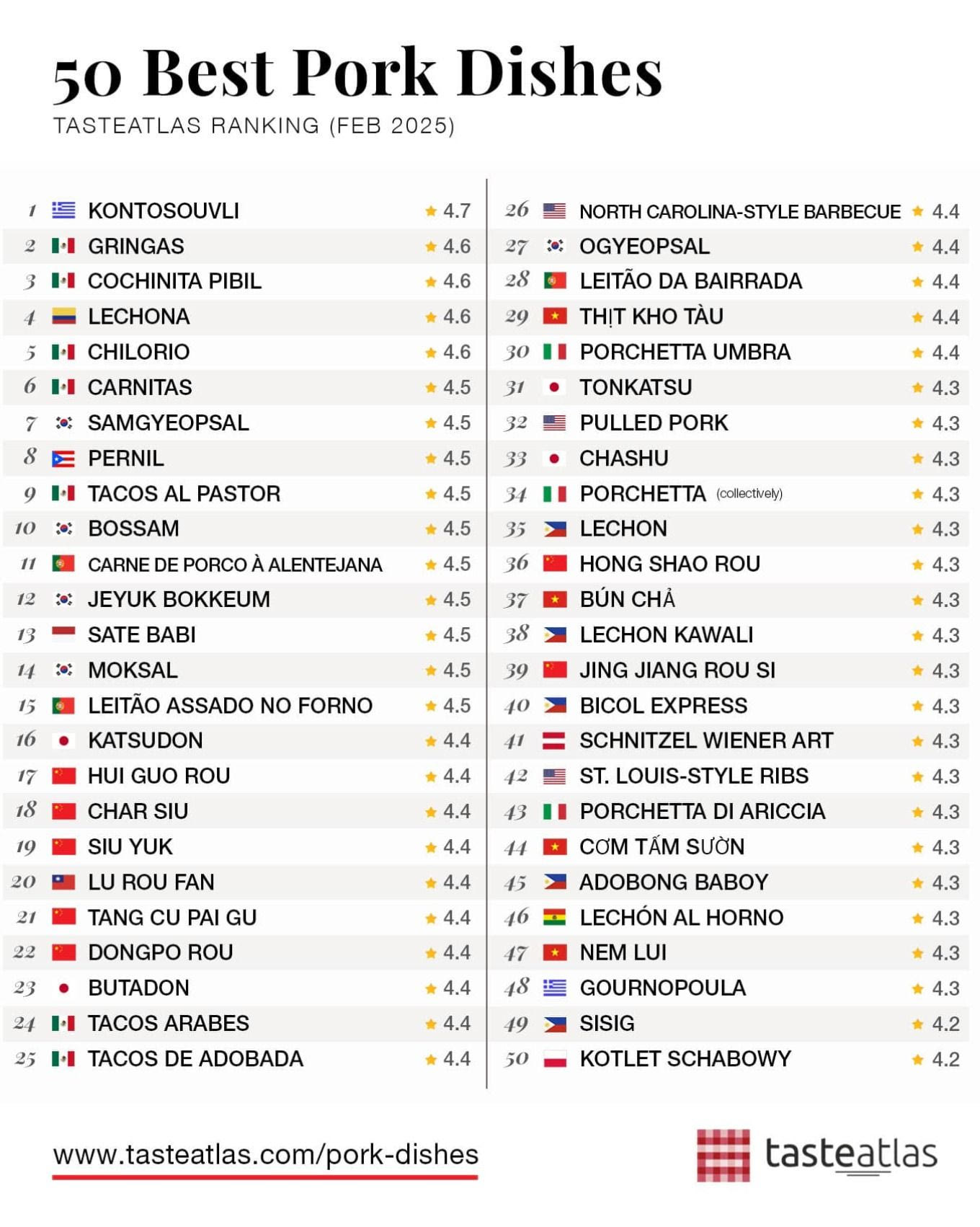 Πρώτο στη λίστα του Taste Atlas με τα 100 καλύτερα πιάτα με χοιρινό κρέας φιγουράρει ένα ελληνικό παραδοσιακό φαγητό.