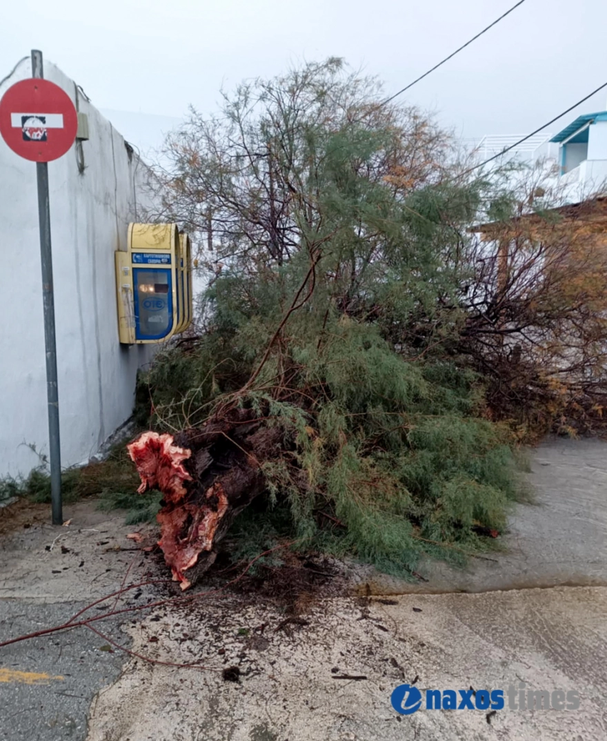 Σήμερα Σάββατο δεν κατάφερε να δέσει στο λιμάνι το Blue Star Delos ενώ δέντρο ξεριζώθηκε εξαιτίας των ισχυρών ανέμων, σύμφωνα με το cyclades24.gr.