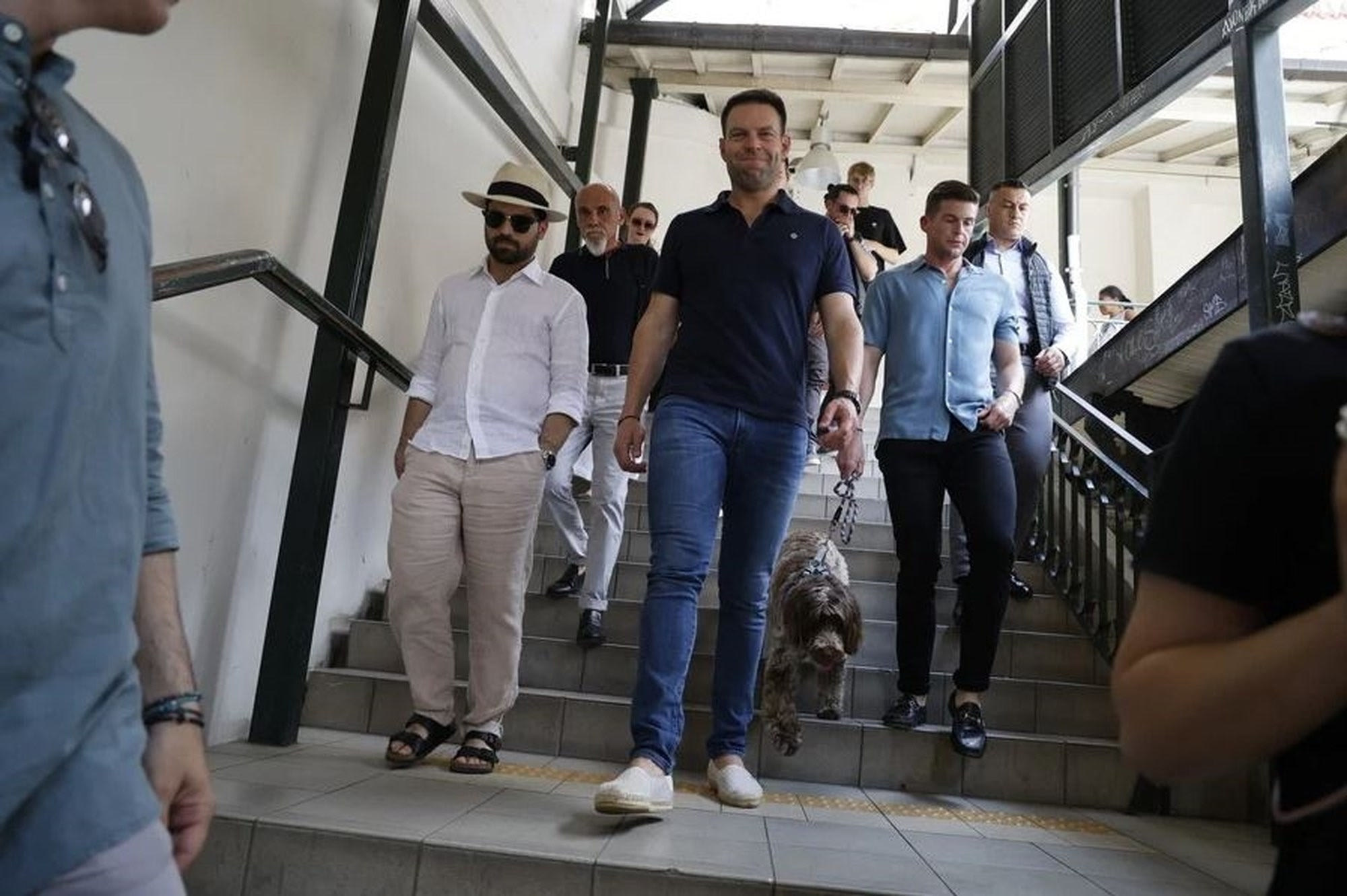 Βόλτα στην Ερμού παρέα με τον σύζυγό του, Τάιλερ, και τη σκυλίτσα του, Φάρλι, πραγματοποίησε ο Στέφανος Κασσελάκης, το μεσημέρι του Σαββάτου 8/6, πριν καταλήξει σε καφέ-μπαρ του Θησείου, για την καθιερωμένη συνάντηση με τους πολιτικούς συντάκτες, λίγες ώρες πριν ανοίξουν οι κάλπες για τις Ευρωεκλογές 2024.