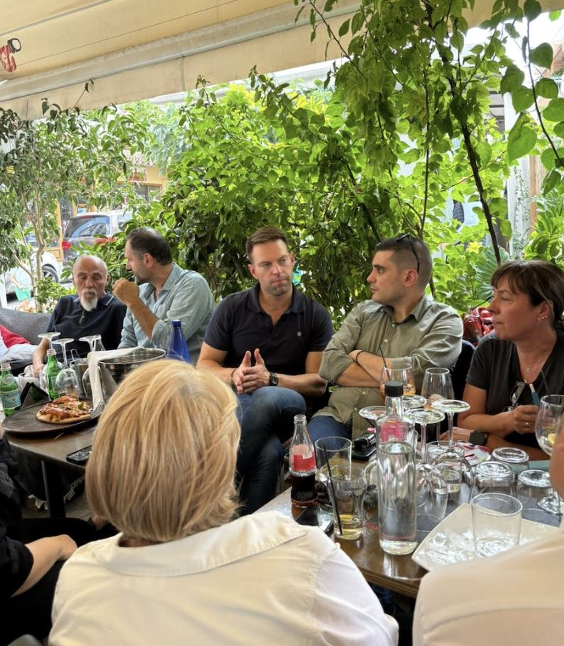 Ειδικότερα, ο πρόεδρος του ΣΥΡΙΖΑ Στέφανος Κασσελάκης πήρε τον ηλεκτρικό από το Μοναστηράκι και αποβιβάστηκε στον σταθμό του Θησείου, για να ανηφορίσει τη Διονυσίου Αρεοπαγίτου και να φτάσει στο κατάστημα εστίασης όπου τον περίμεναν οι δημοσιογράφοι που καλύπτουν το ρεπορτάζ της αξιωματικής αντιπολίτευσης.