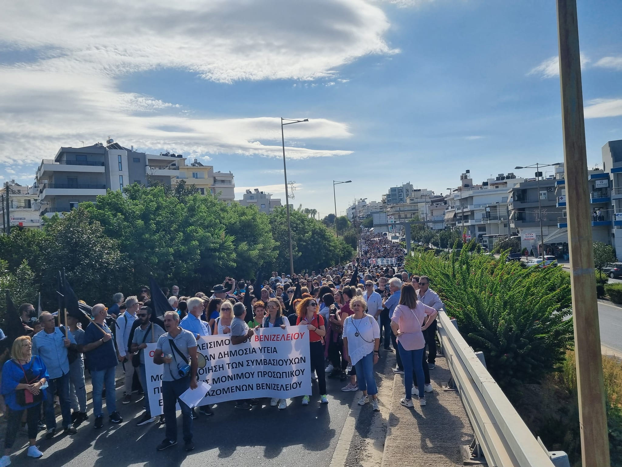 Σε εξέλιξη βρίσκεται αυτή την ώρα η πορεία χιλιάδων ανθρώπων από το Βενιζέλειο Νοσοκομείο προς την πλατεία Ελευθερίας, η οποία γίνεται με αφορμή την υποβάθμιση του ιδρύματος.