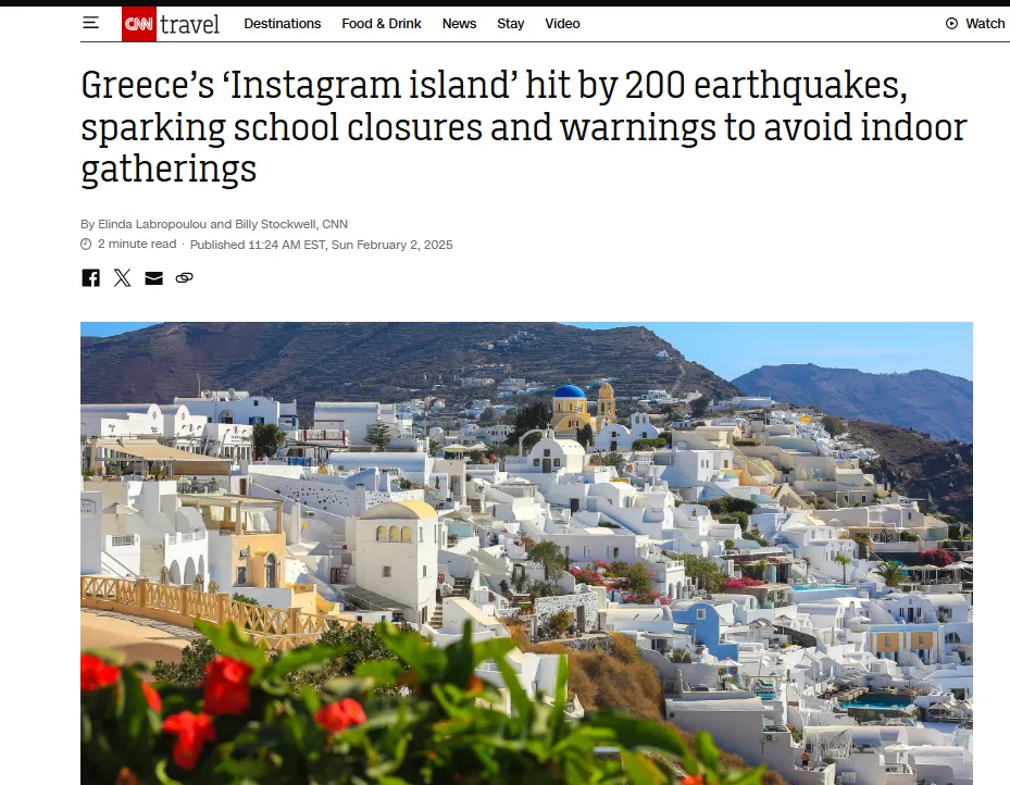 «Το ‘Instagramικό’ νησί της Ελλάδας χτυπήθηκε από 200 σεισμούς, προκαλώντας το κλείσιμο των σχολείων», είναι ο τίτλος του άρθρου που φιλοξενεί το CNN.