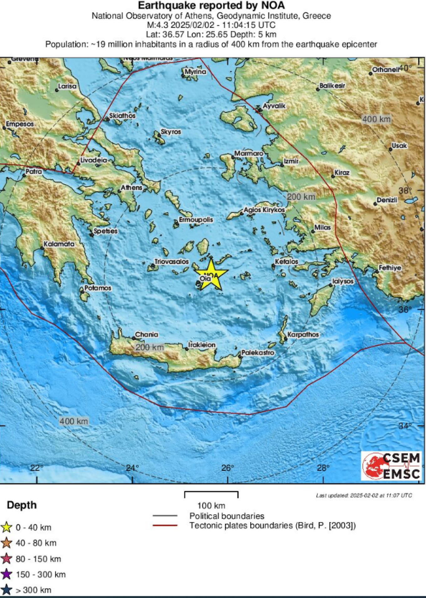 Το Ευρωμεσογειακό Σεισμολογικό Ινστιτούτο κατέγραψε τη δόνηση επίσης στα 4,3 Ρίχτερ.