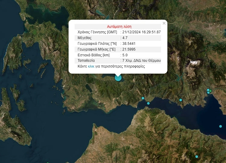 Ισχυρός σεισμός αναστάτωσε το απόγευμα του Σαββάτου (21/12) τους κατοίκους του Αγρινίου.