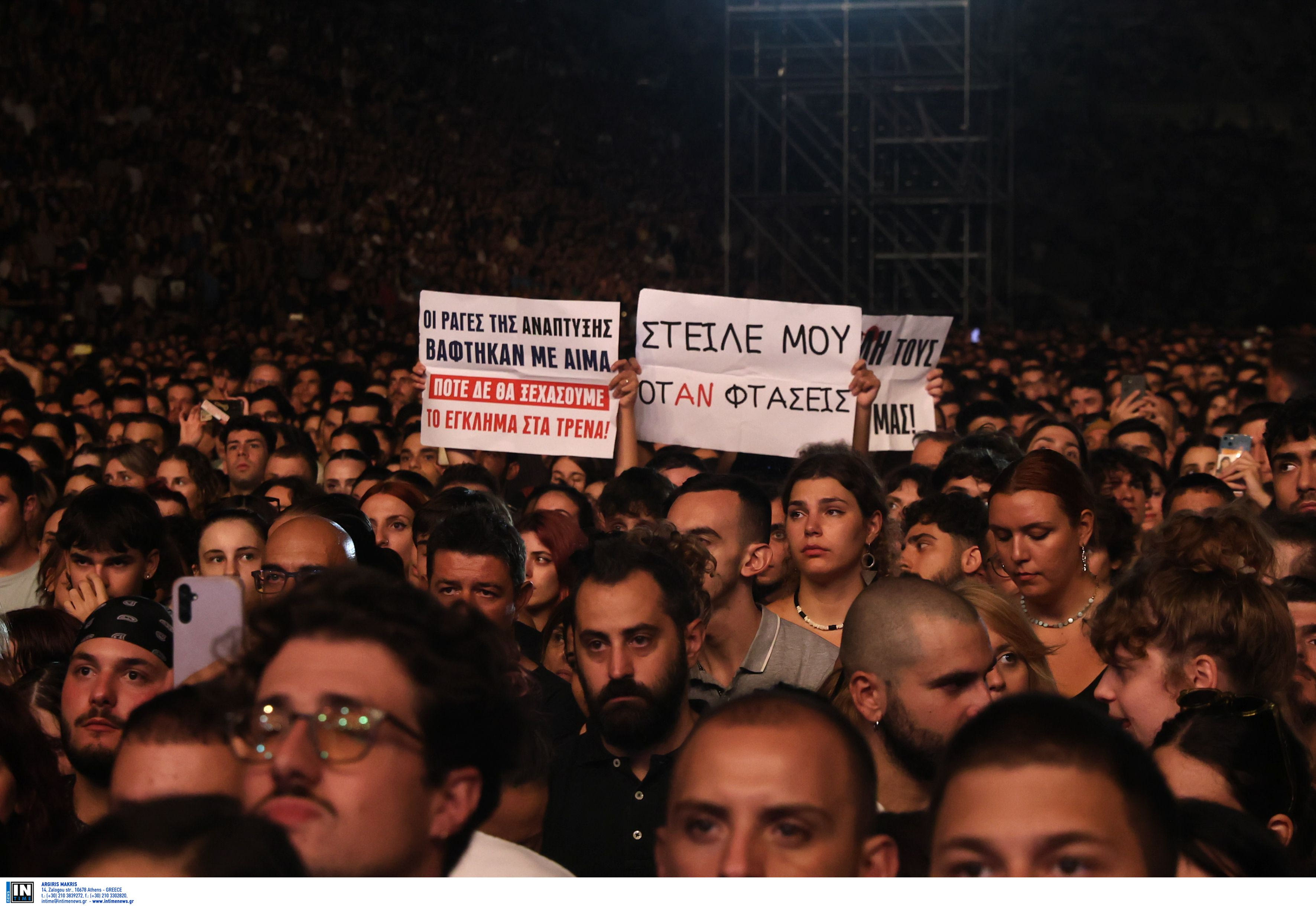 Πλημμύρισε το Καλλιμάρμαρο για τη μεγάλη συναυλία αφιερωμένη στα θύματα των Τεμπών, με χιλιάδες να γεμίζουν από νωρίς το στάδιο τόσο για να ακούσουν από κοντά τους Σωκράτη Μάλαμα, Θανάση Παπακωνσταντίνου, Τάνια Τσανακλίδου κ.α. αλλά και για να αποτίσουν φόρο τιμής σε όσους σκοτώθηκαν στο φοβερό δυστύχημα.