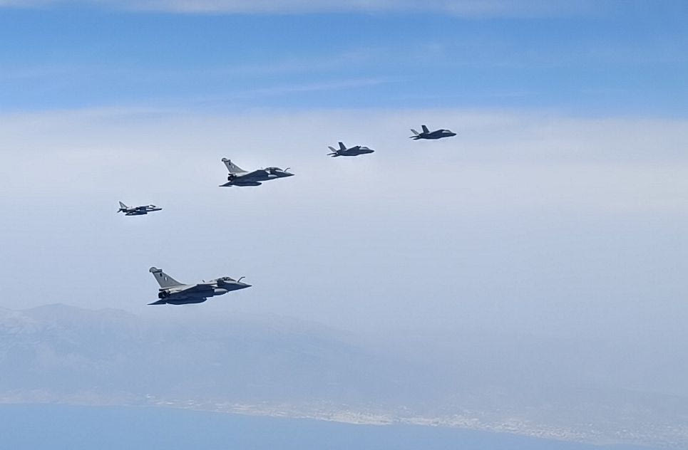Συνεκπαίδευση με μαχητικά αεροσκάφη της Πολεμικής Αεροπορίας (ΠΑ) και της Ιταλικής Πολεμικής Αεροπορίας, πραγματοποιήθηκε χθες εντός του FIR Αθηνών, νότια της Κρήτης.