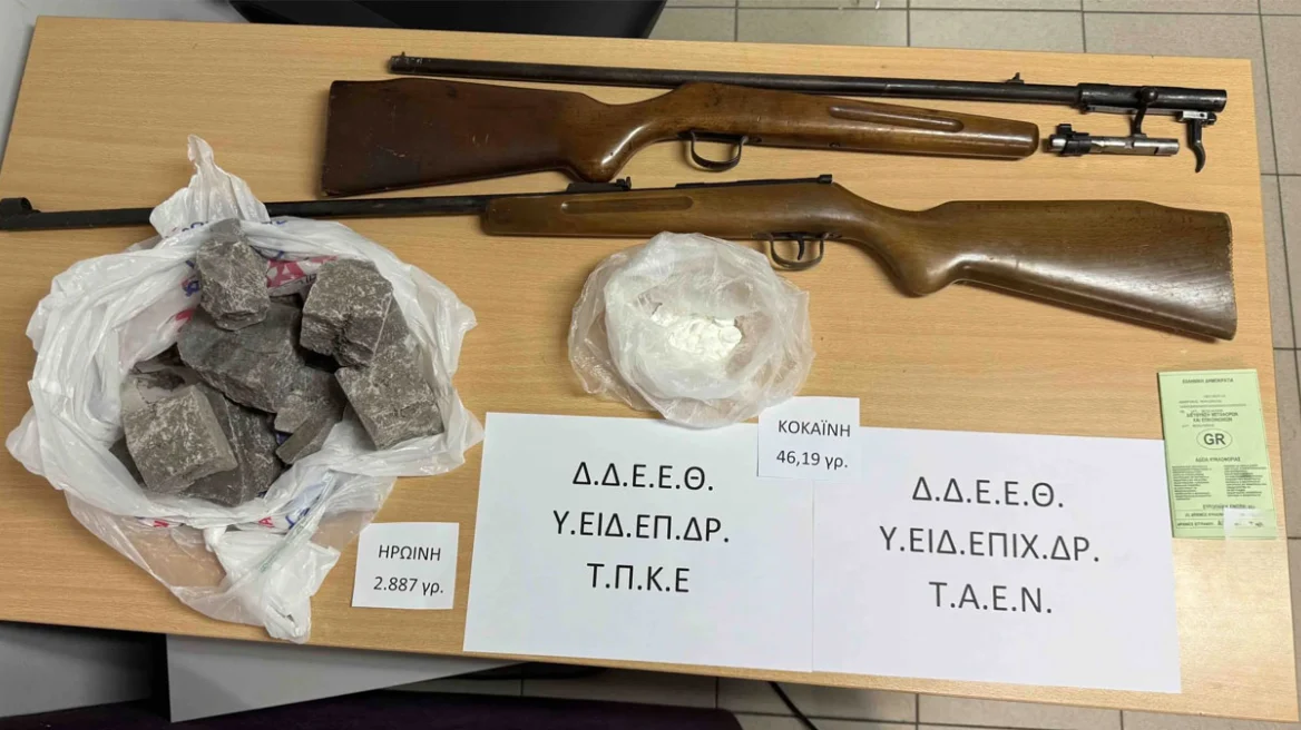 Στην ειδική κρύπτη εντός του οχήματος που οδηγούσε, κατασχέθηκαν συνολικά 2 κιλά και 887 γραμμάρια της συγκεκριμένης ναρκωτικής ουσίας. Ακολούθησε έρευνα στο σπίτι του, όπου εντοπίστηκαν – επιπλέον – ποσότητα κοκαΐνης (46,19 γραμμάρια) και δύο κυνηγετικά όπλα που κατείχε χωρίς σχετική άδεια.
