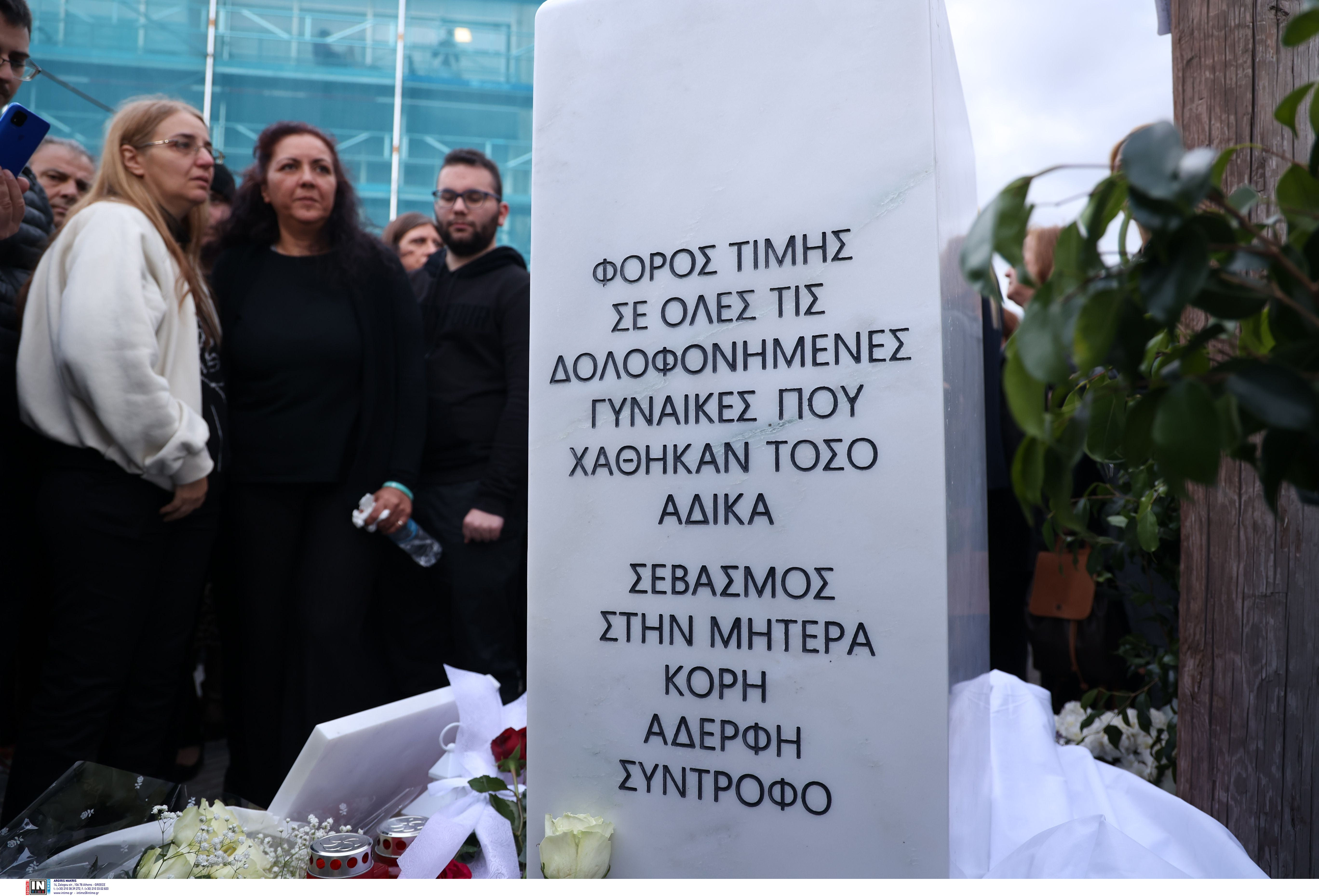 Ράγισαν καρδιές στα αποκαλυπτήρια του μνημείου για την Κυριακή Γρίβα στο σημείο της δολοφονίας από τον πρώην σύντροφό της έξω από το αστυνομικό τμήμα Αγίων Αναργύρων.