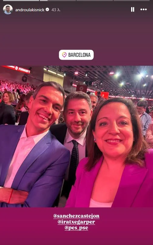 Στην selfie μαζί με τον Ν. Ανδρουλάκη και τον Ισπανό πρωθυπουργό, είναι και η Ιράτσε Γκαρσία, επικεφαλής της ευρωομάδας των Σοσιαλιστών.
