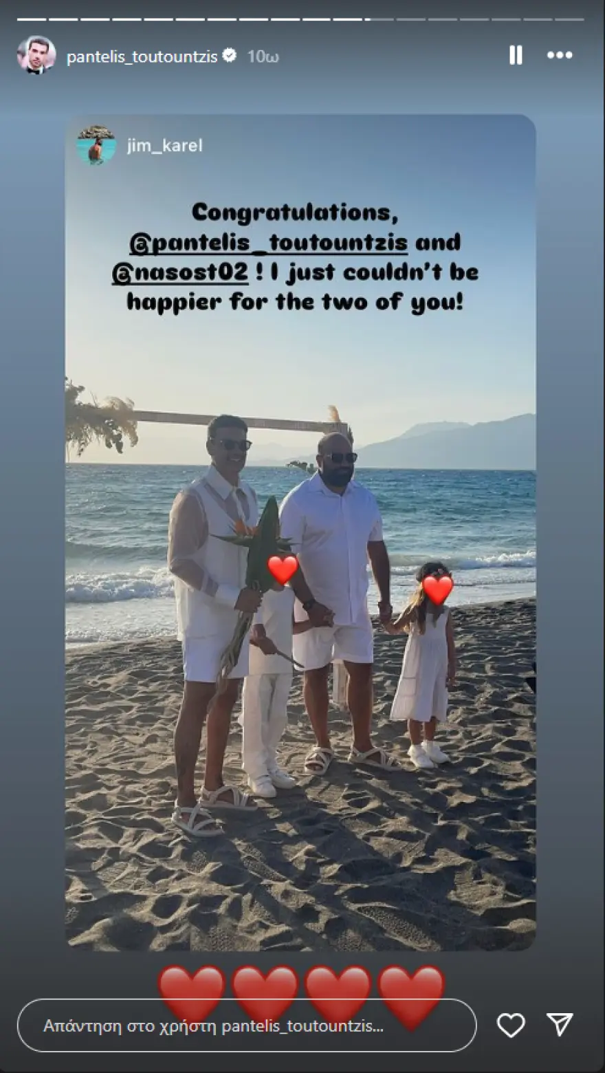 Στιγμιότυπα από τον γάμο του Παντελή Τουτουντζή ανέβηκαν στα social media και πιο συγκεκριμένα, στο Instagram από τους καλεσμένους τους, oι οποίοι τους ευχήθηκαν και δημόσια.