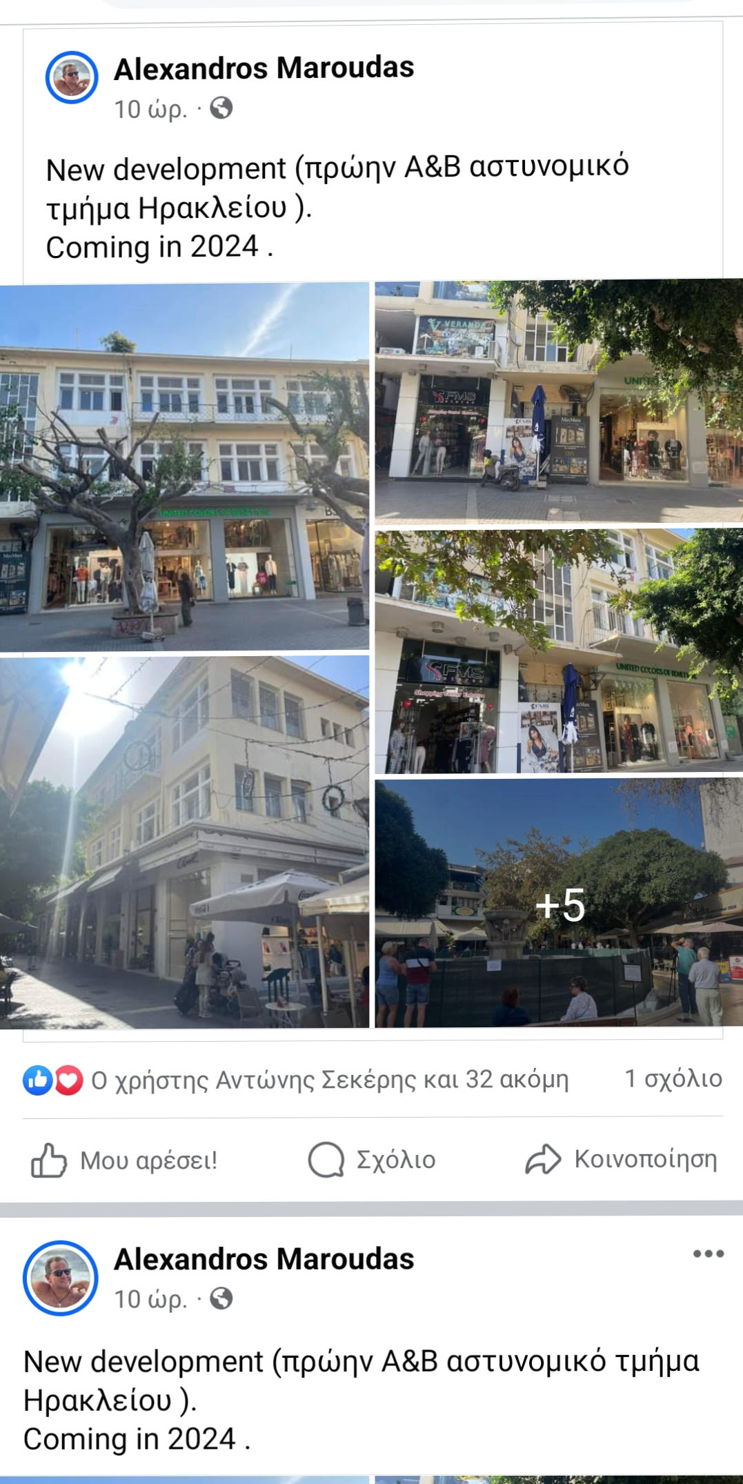Πλήρως επιβεβαιώνει το ρεπορτάζ της “Π” ο Αλέξανδρος Μαρούδας, ο οποίος πριν από λίγο ανακοίνωσε κι επίσημα στον προσωπικό του λογαριασμό στο facebook πως περνούν στα χέρια της εταιρίας τόσο το πρώην Α’ όσο και το πρώην Β’ Αστυνομικό Τμήμα στην καρδιά του Ηρακλείου, τα οποία και γειτνιάζουν με επιχειρήσεις στις οποίες ήδη δραστηριοποιείται ο Όμιλος.