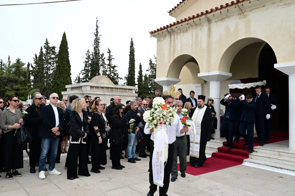 Από νωρίς το Νεκροταφείο Ζωγράφου γέμισε στεφάνια και λουλούδια για την Άννα Παναγιωτοπούλου, που έφυγε από τη ζωή το Μεγάλο Σάββατο στα 74 της χρόνια.