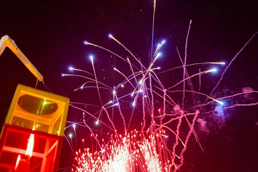 Οι μαθητές των σχολείων της Τήνου βρίσκονται στην αρχή της πομπής, ενώ κατά την διάρκεια της διαδρομής και ειδικά όταν φτάνει στο λιμάνι, ο ουρανός φωτίζεται από τα βεγγαλικά.