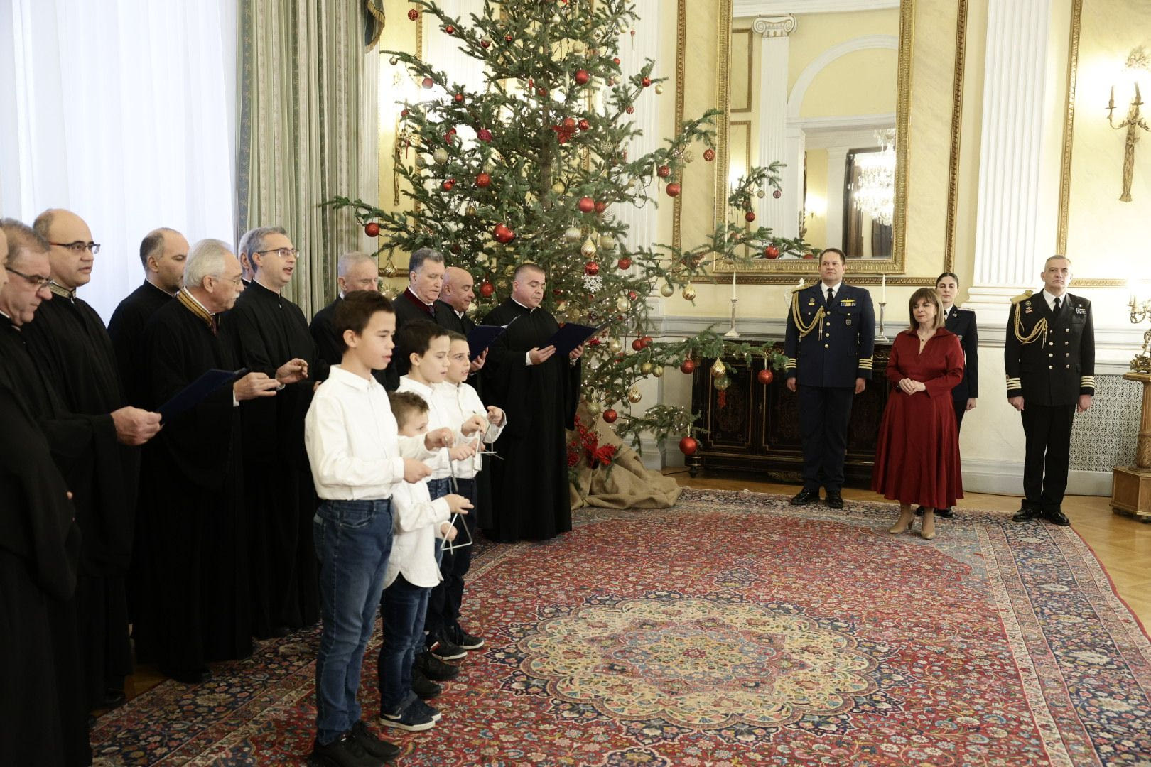 Η Πρόεδρος της Δημοκρατίας υποδέχθηκε στο Προεδρικό Μέγαρο μικρά παιδιά, άτομα μεγαλύτερης ηλικίας αλλά και συλλόγους διατήρησης της παράδοσης. Η μπάντα των Ενόπλων Δυνάμεων παραδοσιακά και η Προεδρική Φρουρά έψαλαν για αρχή τα κάλαντα της Πρωτοχρονιάς αλλά και τα κάλαντα Χίου και Σίφνου και ακολούθησαν διαδοχικά Σύλλογοι Μέριμνας Νέων, Πνευματικά Ιδρύματα και άλλοι φορείς.