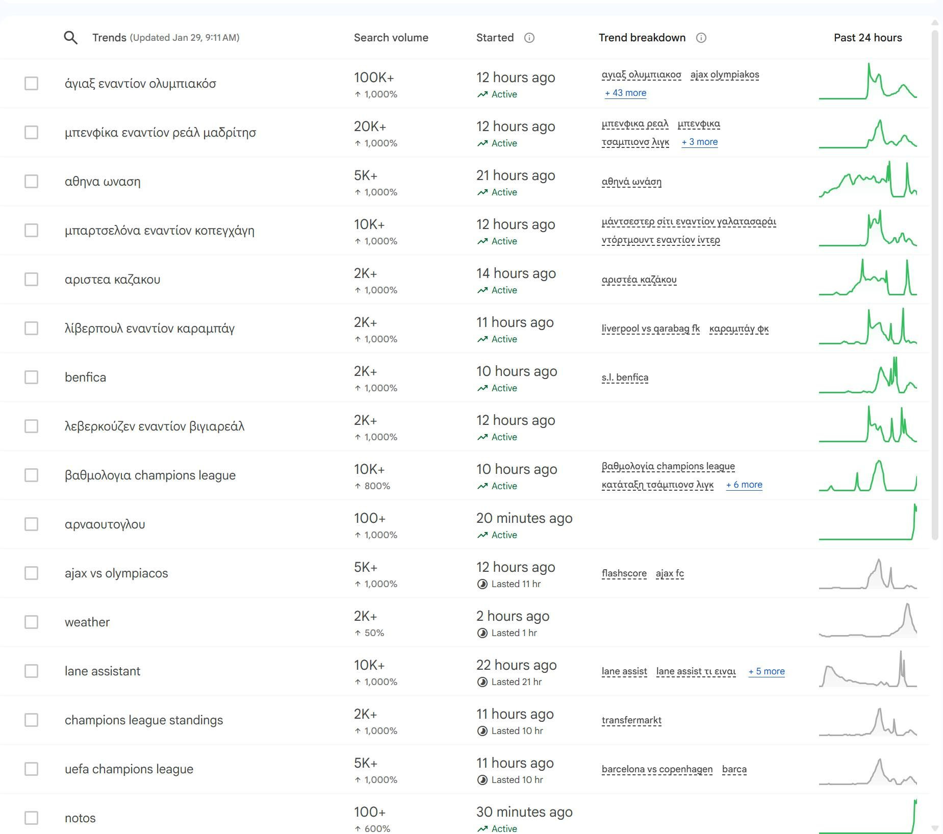 Τι γκουγκλάραμε, λοιπόν, το τελευταίο 24ωρο..ποδοσφαιρικούς αγώνες και πάλι αγώνες, αγώνες, Αθηνά Ωνάση, Καιρός, Αρναούτογλου..αγώνες, όπως δείχνει ο πίνακας που ανάρτησε ο Γιώργος Καλουτσάκης.