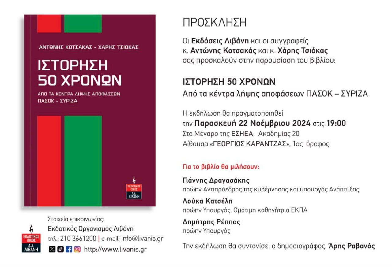 Η πρόσκληση για την παρουσίαση του βιβλίου