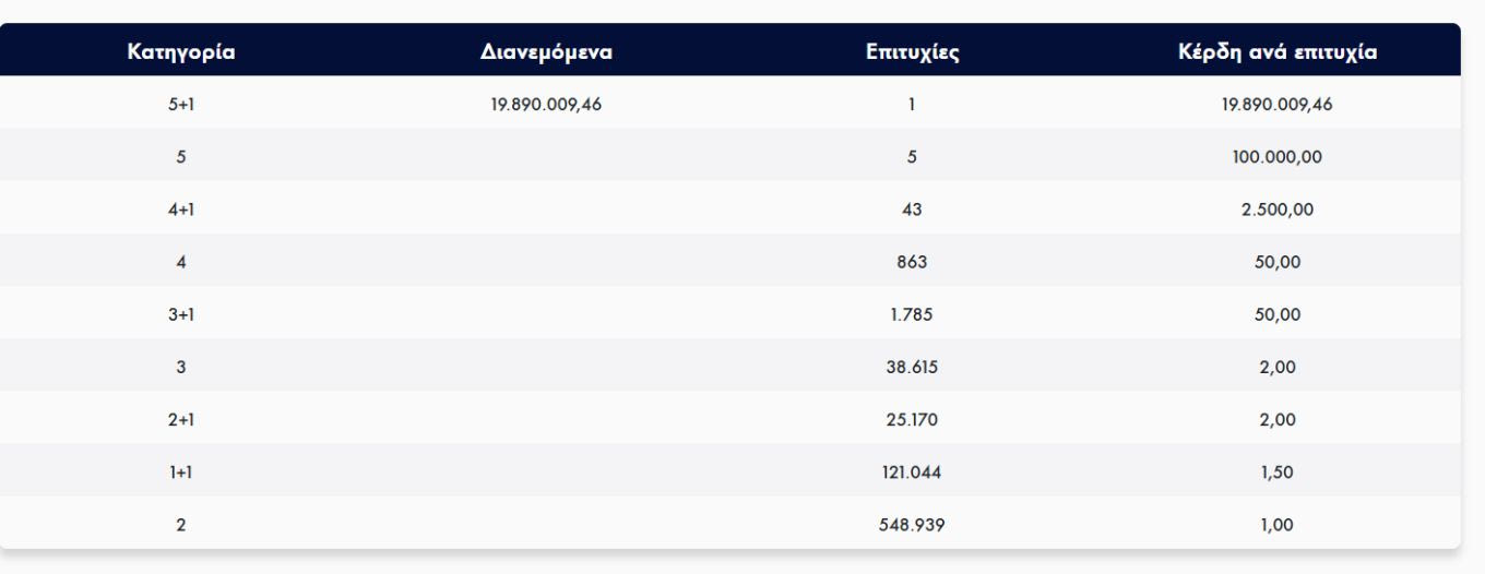 Στη σημερινή κλήρωση βρέθηκε ένας υπερτυχερός που κέρδισε το ποσό των 19.890.009 ευρώ.