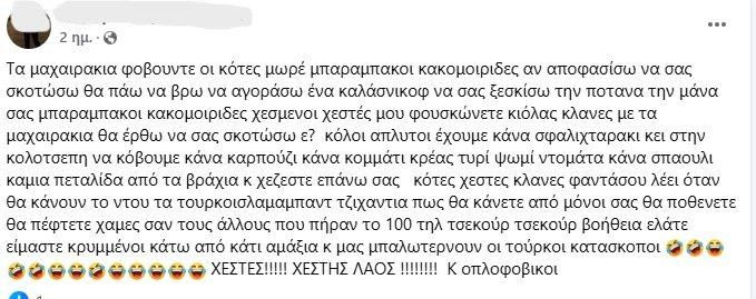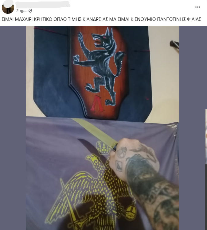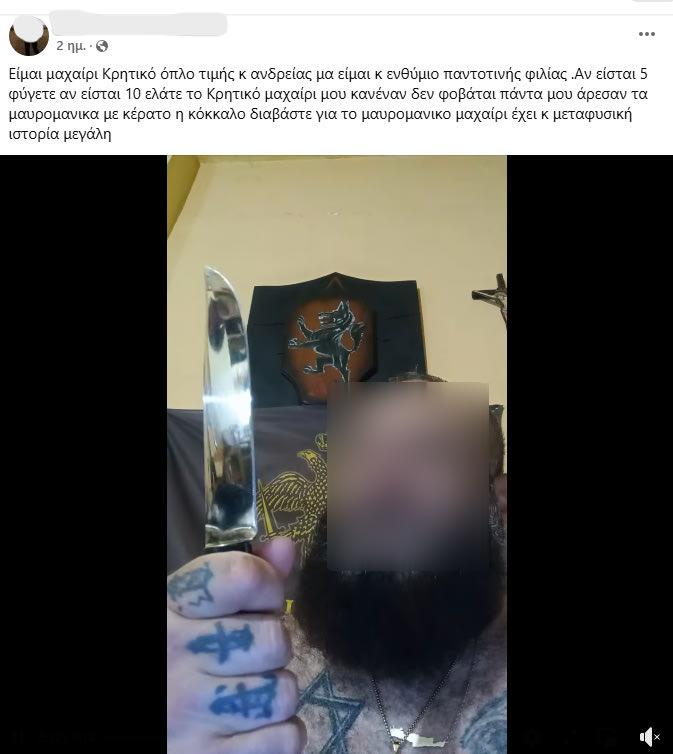Την ίδια στιγμή, σε άλλη πρόσφατη ανάρτησή του, επιδεικνύει άλλο μαχαίρι, γράφοντας «αν σταθούν απέναντί σου, νίκησε τους, είναι εχθροί σου».