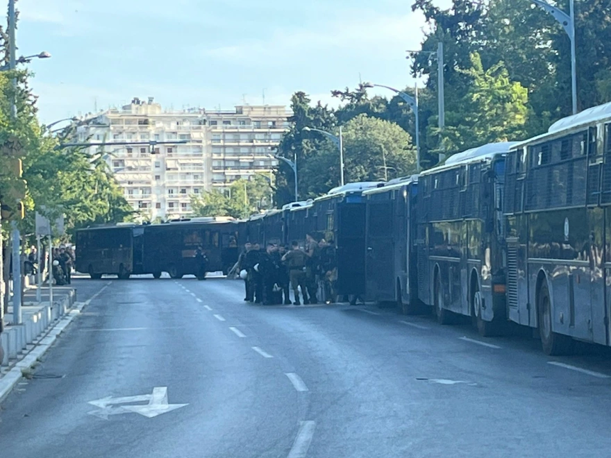 Τα μέτρα της ΕΛ.ΑΣ. είναι αυστηρά. Περιμετρικά του Βελλίδειου όπου αναμένεται να μιλήσει στις 19:30 ο πρωθυπουργός, Κυριάκος Μητσοτάκης έχουν τοποθετηθεί κλούβες των ΜΑΤ και κιγκλιδώματα. Ένας φραγμός της Αστυνομίας είναι δίπλα στο Δημαρχιακό Μέγαρο Θεσσαλονίκης, ένας δεύτερος μπροστά στο Αρχαιοολογικό Μουσείο Θεσσαλονίκης.