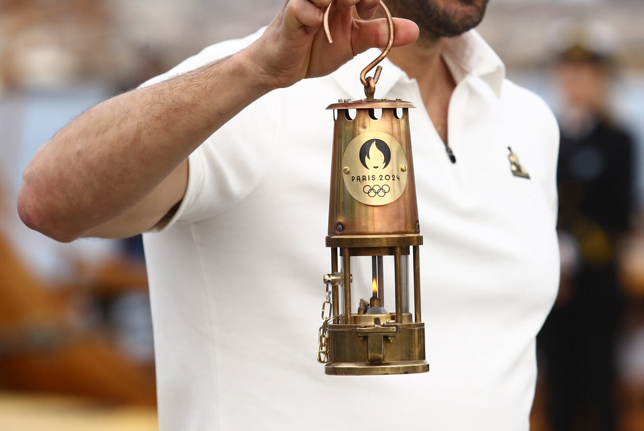 Ο Πρόεδρος της διρογανώτριας αρχής των ολυμπιακών αγώνων, Τόνι Εστανγκέ πρώην Ολυμπιονίκης στην Αθήνα στο κανόε καγιάκ, κρατούσε στα χέρια του την Ολυμπιακή Φλόγα, την οποία παρέλαβε από τον Σπύρο Καπράλο και έχδει αναλάβει να τη μεταφέρει για πρώτη φορά στην ιστορία δια θαλάσσης στη Γαλλία, με το πανέμορφο ιστιοφόρο, σύμβολο της ναυτικής ιστορίας της χώρας.
