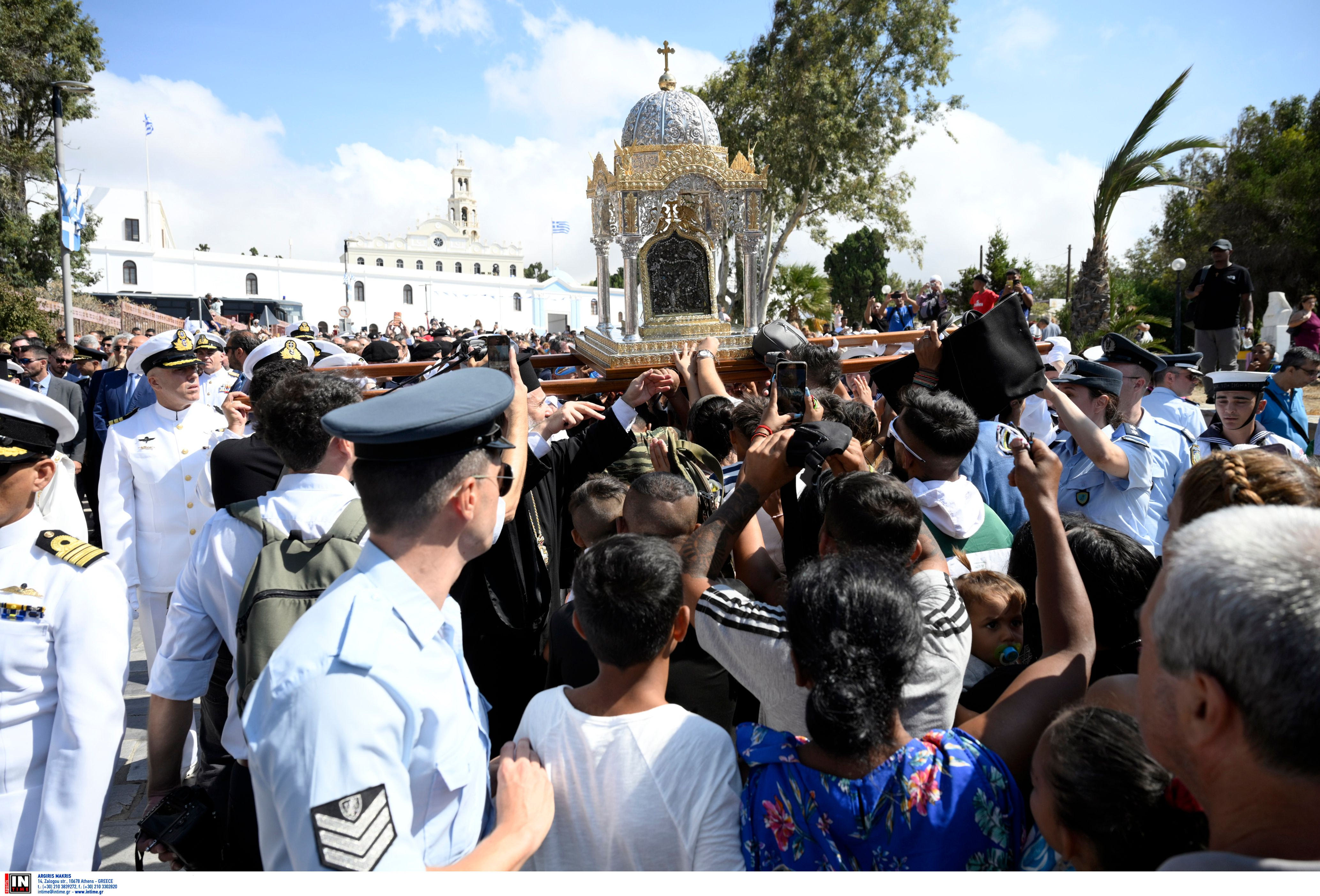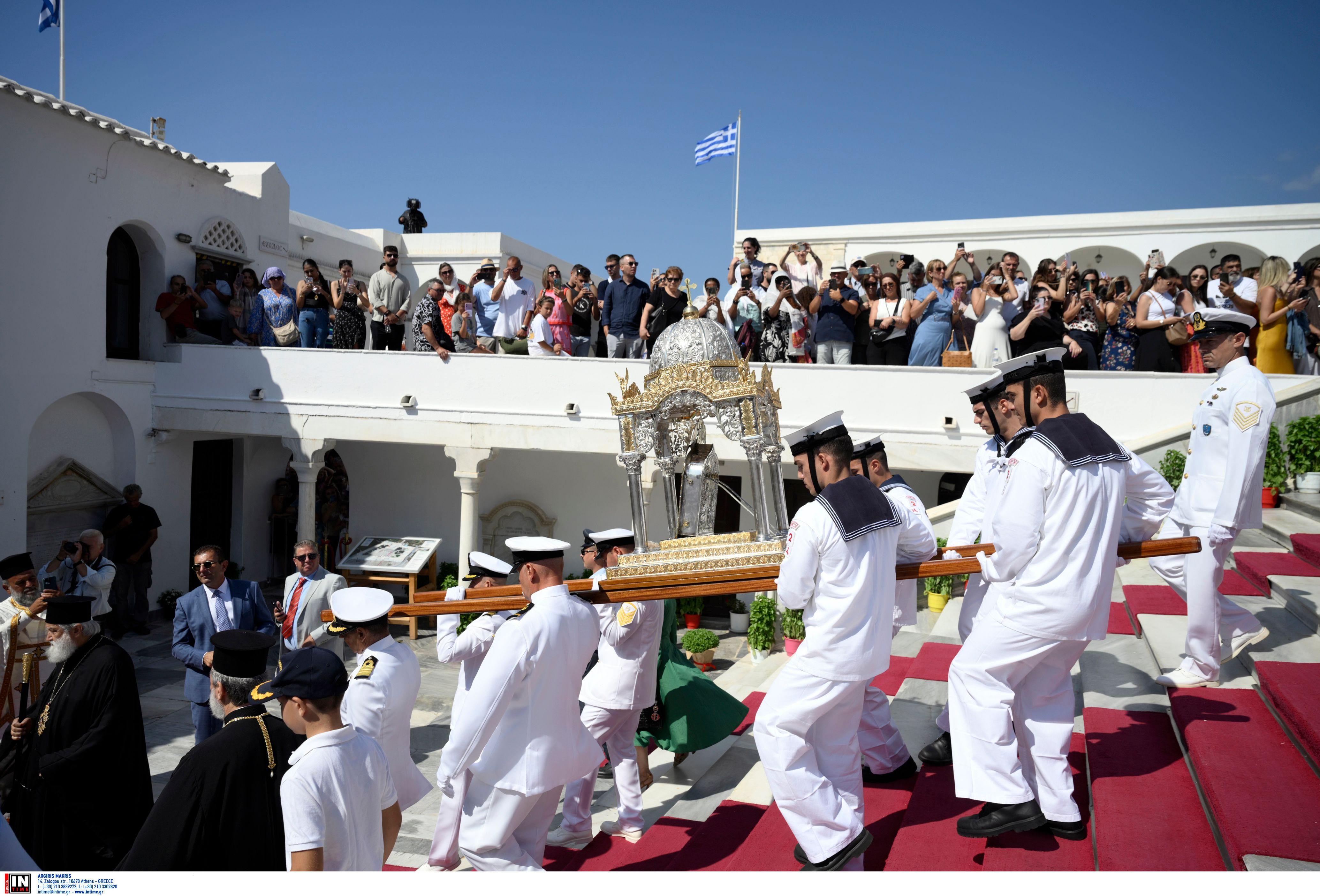 Χιλιάδες πιστοί από όλα τα μέρη της χώρας συρρέουν στο νησί των Κυκλάδων για να προσκηνύσουν την ντυμένη με κόκκινο χαλί λεωφόρο της Μεγαλόχαρης για να εκπληρώσουν το τάμα τους.